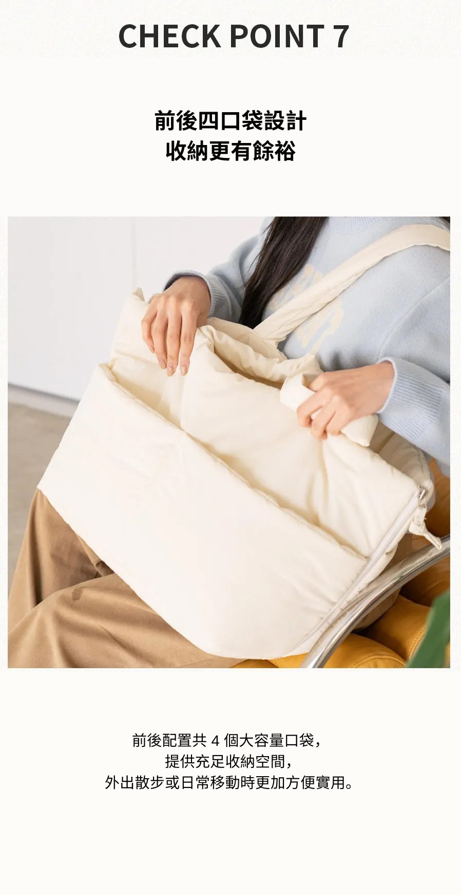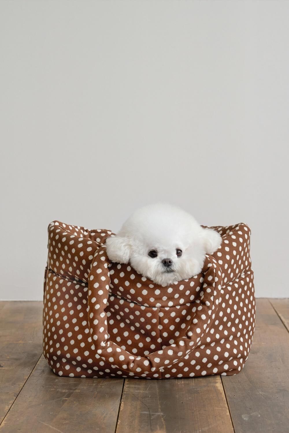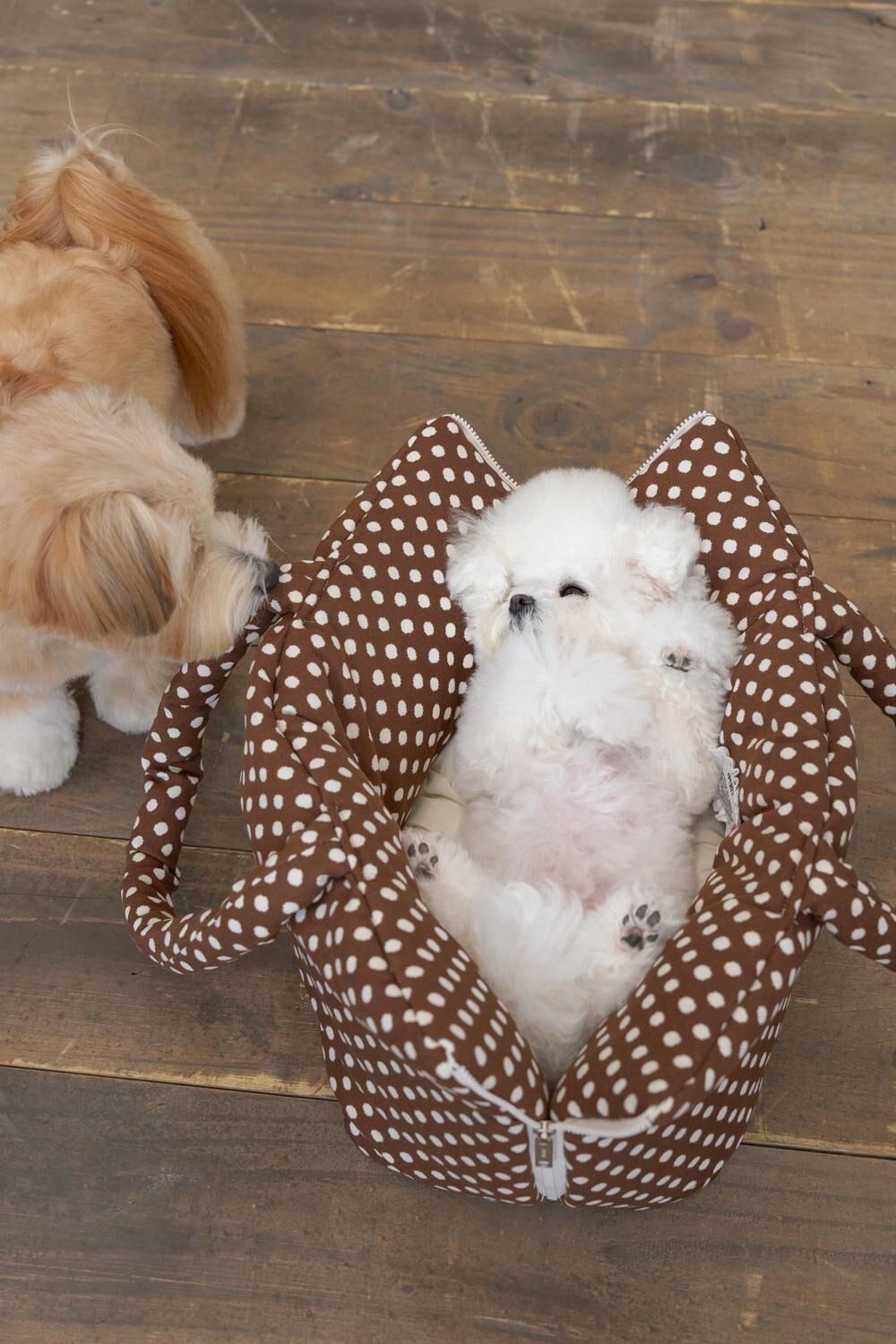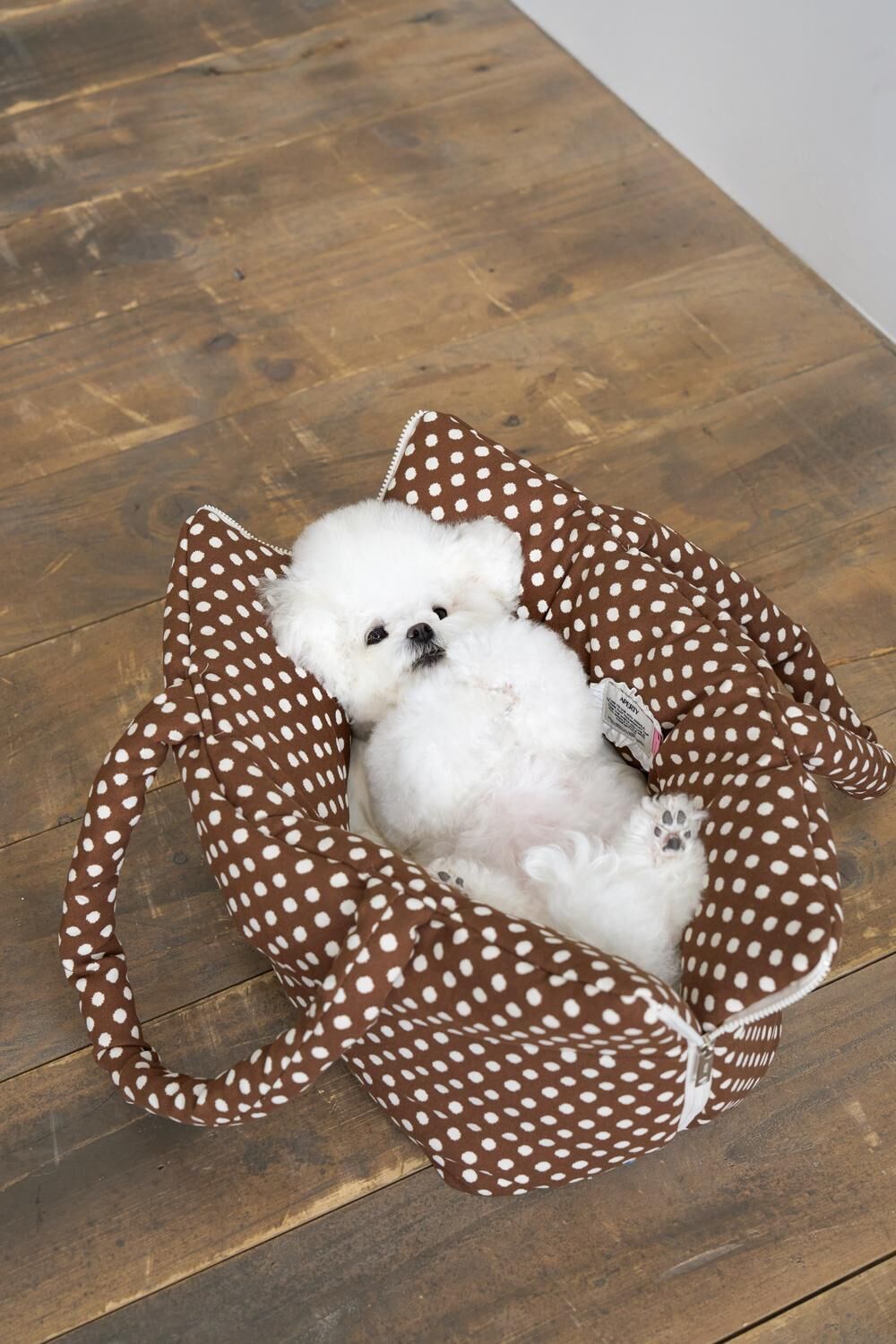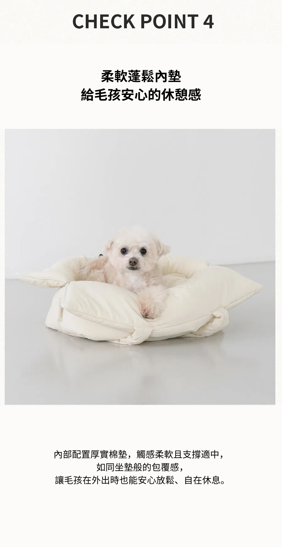 這款扇貝型寵物提袋擁有如抱枕般蓬鬆柔軟的外型,可打平攤開變身成坐墊,兼具舒適感與便利性,是近來在韓國日本也大受歡迎的人氣包款。