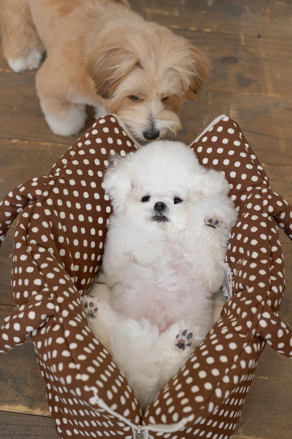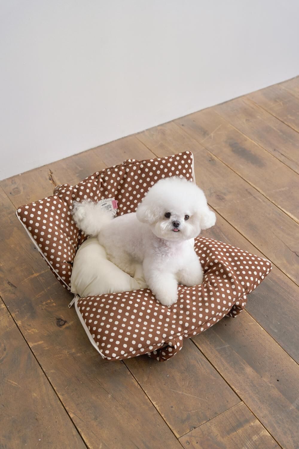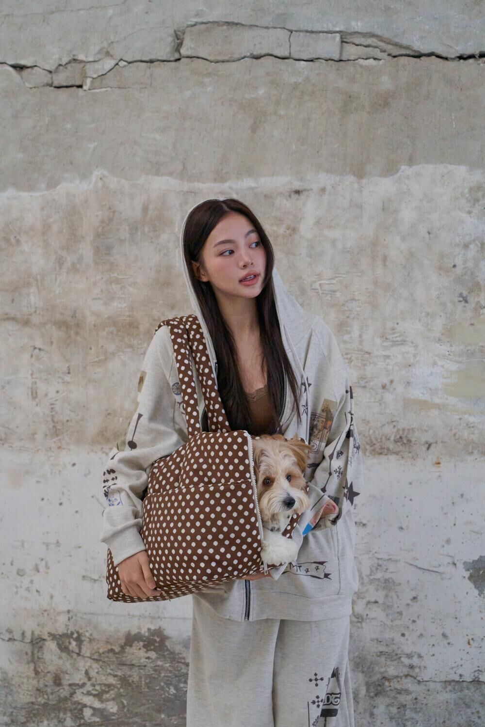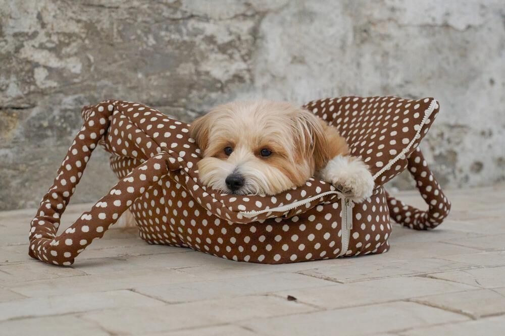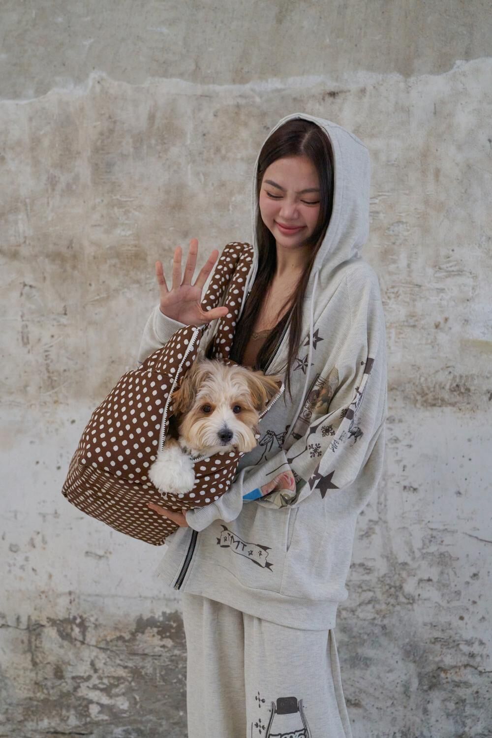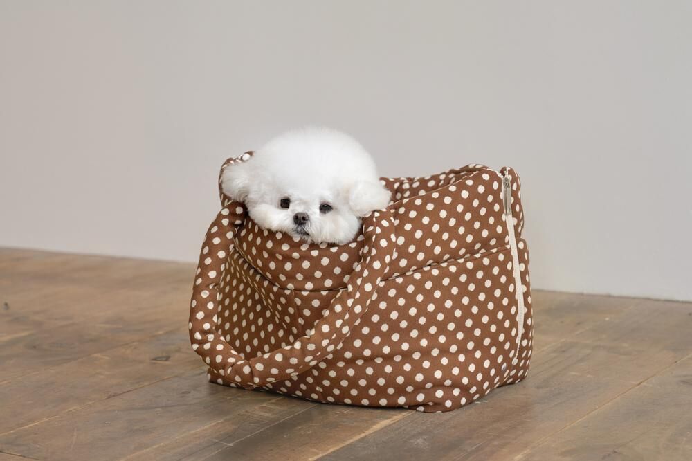 這款扇貝型寵物提袋擁有如抱枕般蓬鬆柔軟的外型,可打平攤開變身成坐墊,兼具舒適感與便利性,是近來在韓國日本也大受歡迎的人氣包款。