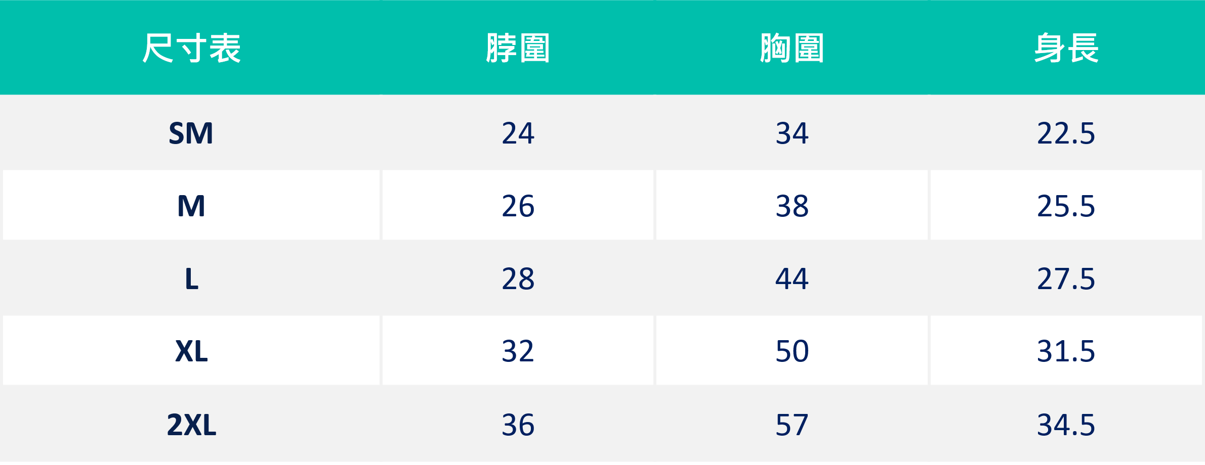 * 尺寸選擇請以胸圍為主,衣長穿著起來的長度會因版型與狗狗身材而有不同。