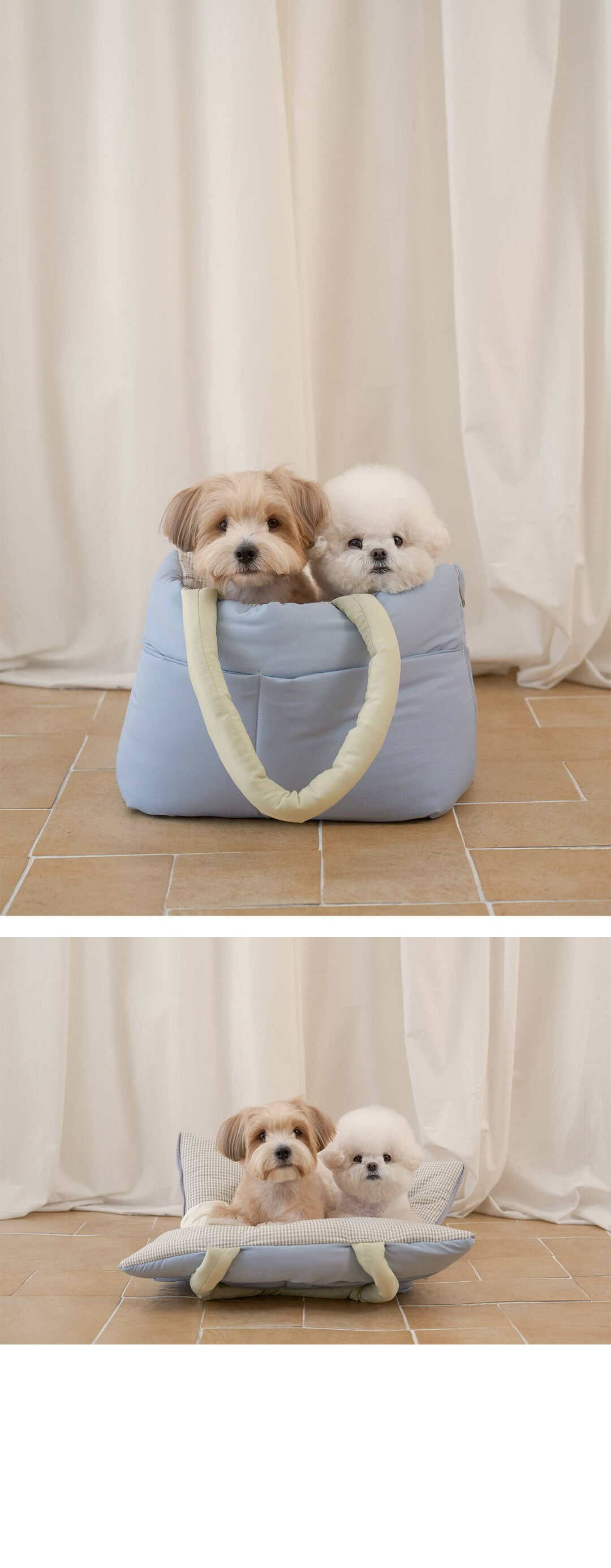這款扇貝型寵物提袋擁有如抱枕般蓬鬆柔軟的外型,可打平攤開變身成坐墊,兼具舒適感與便利性,是近來在韓國日本也大受歡迎的人氣包款。