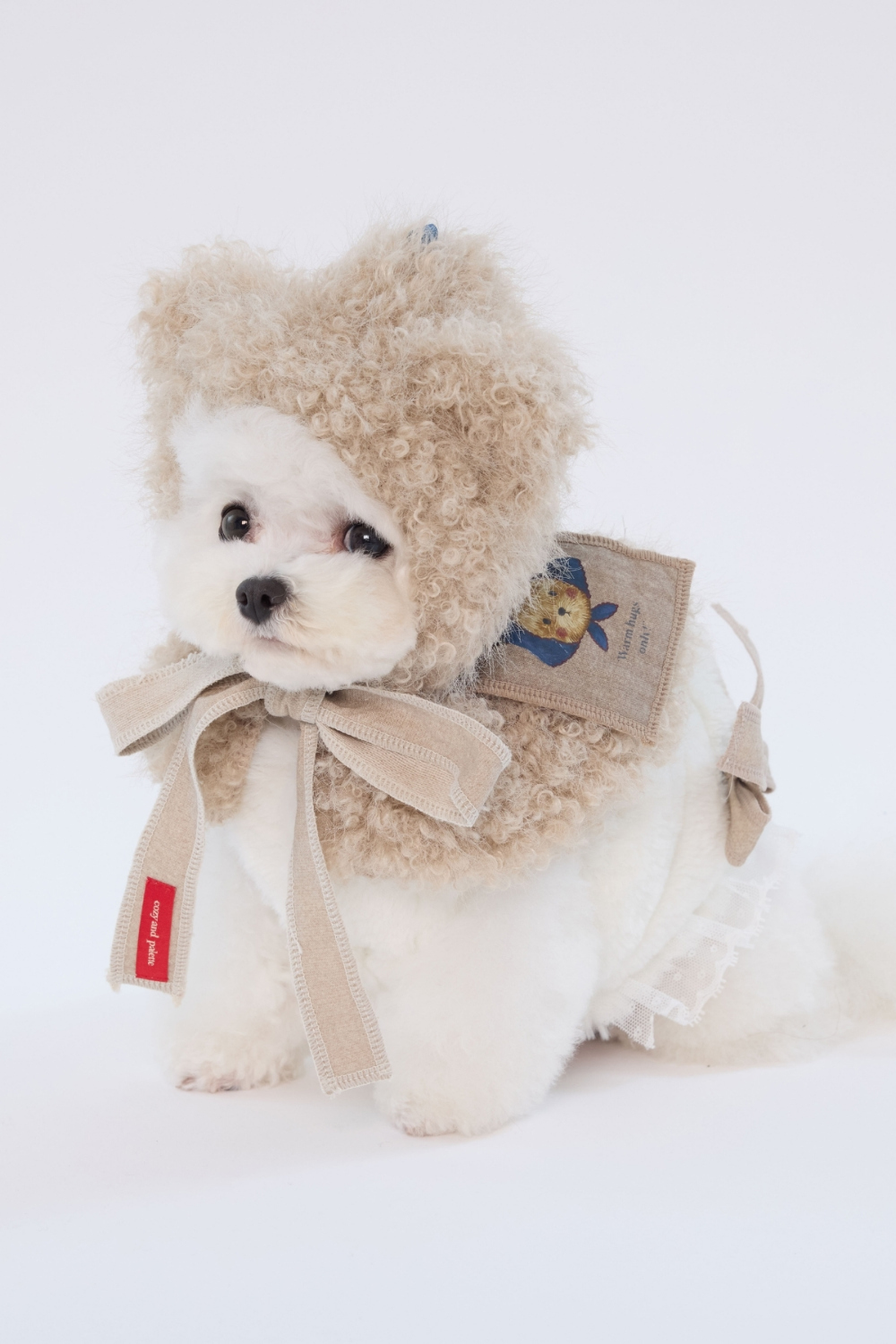 這款可愛的泰迪連帽披肩,是今年秋冬造型裡最能增加「可愛亮點」的單品。蓬鬆柔軟的泰迪毛,搭配立起的小熊耳朵,一套上就能營造滿滿季節感。背面還有精緻的小熊貼片設計,讓整體輪廓更加獨特。非常推薦在聖誕與年末季節,把它搭配在日常穿搭裡,瞬間多一份溫暖又可愛的氛圍。