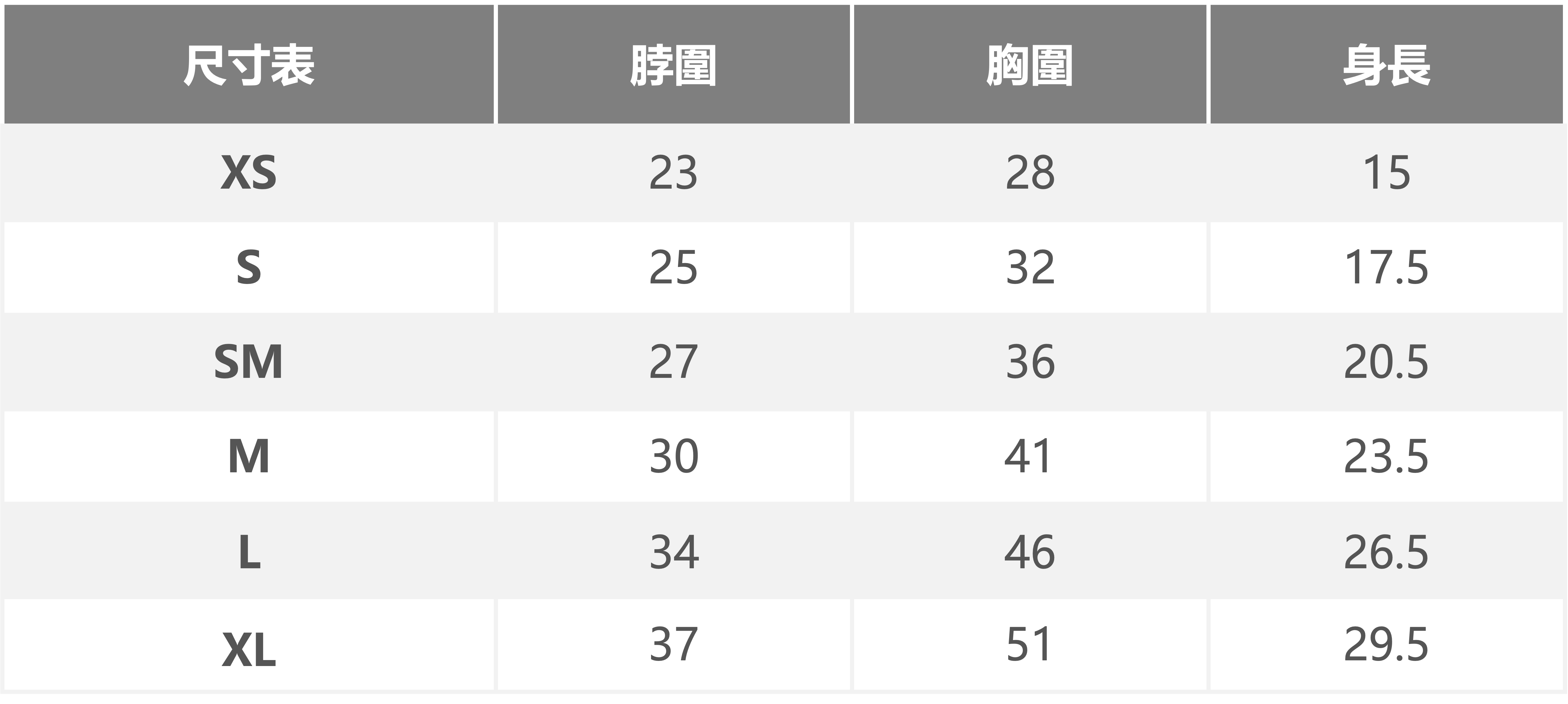 2. 尺寸選擇請以胸圍為主,衣長穿著起來的長度會因版型與狗狗身材而有不同。