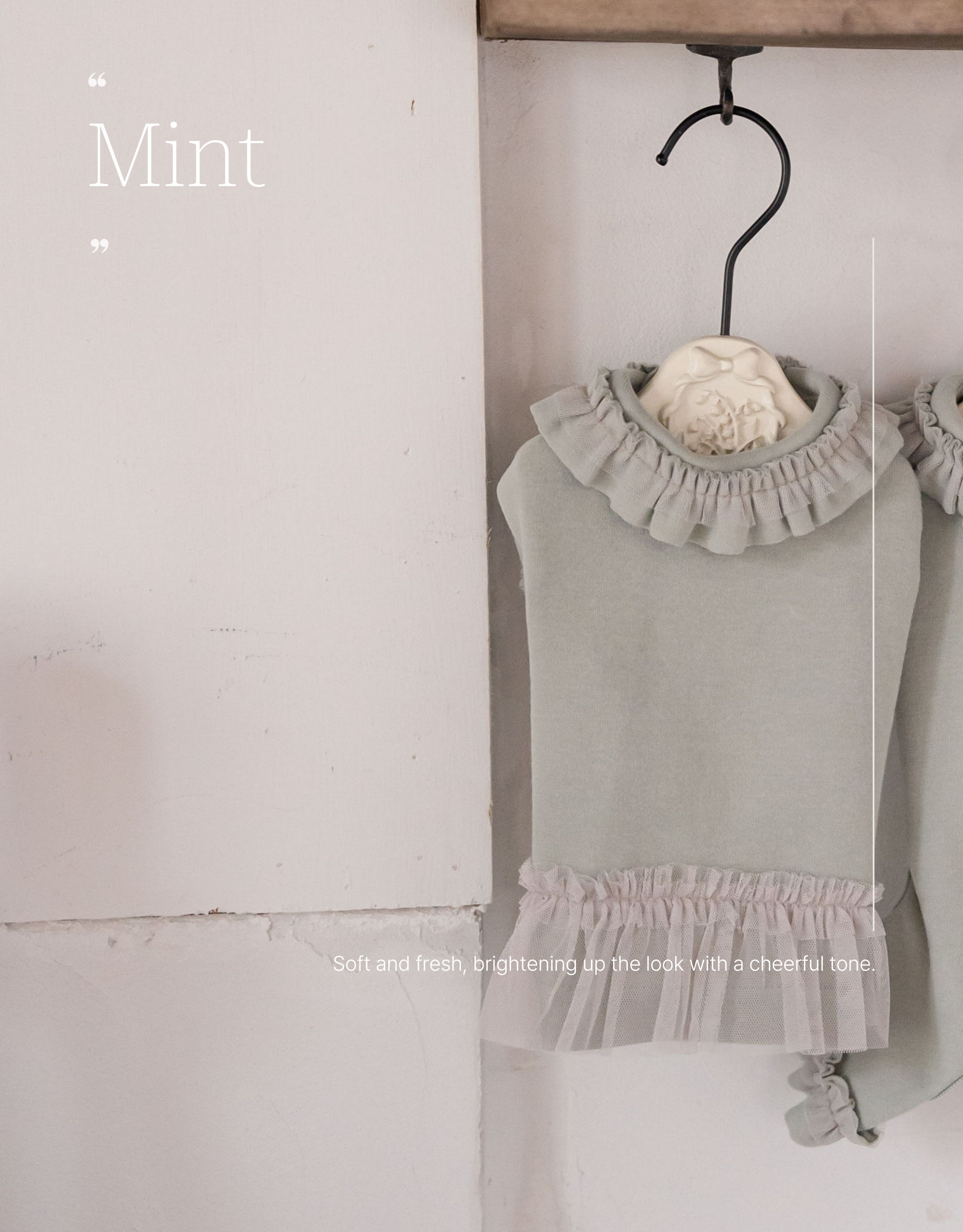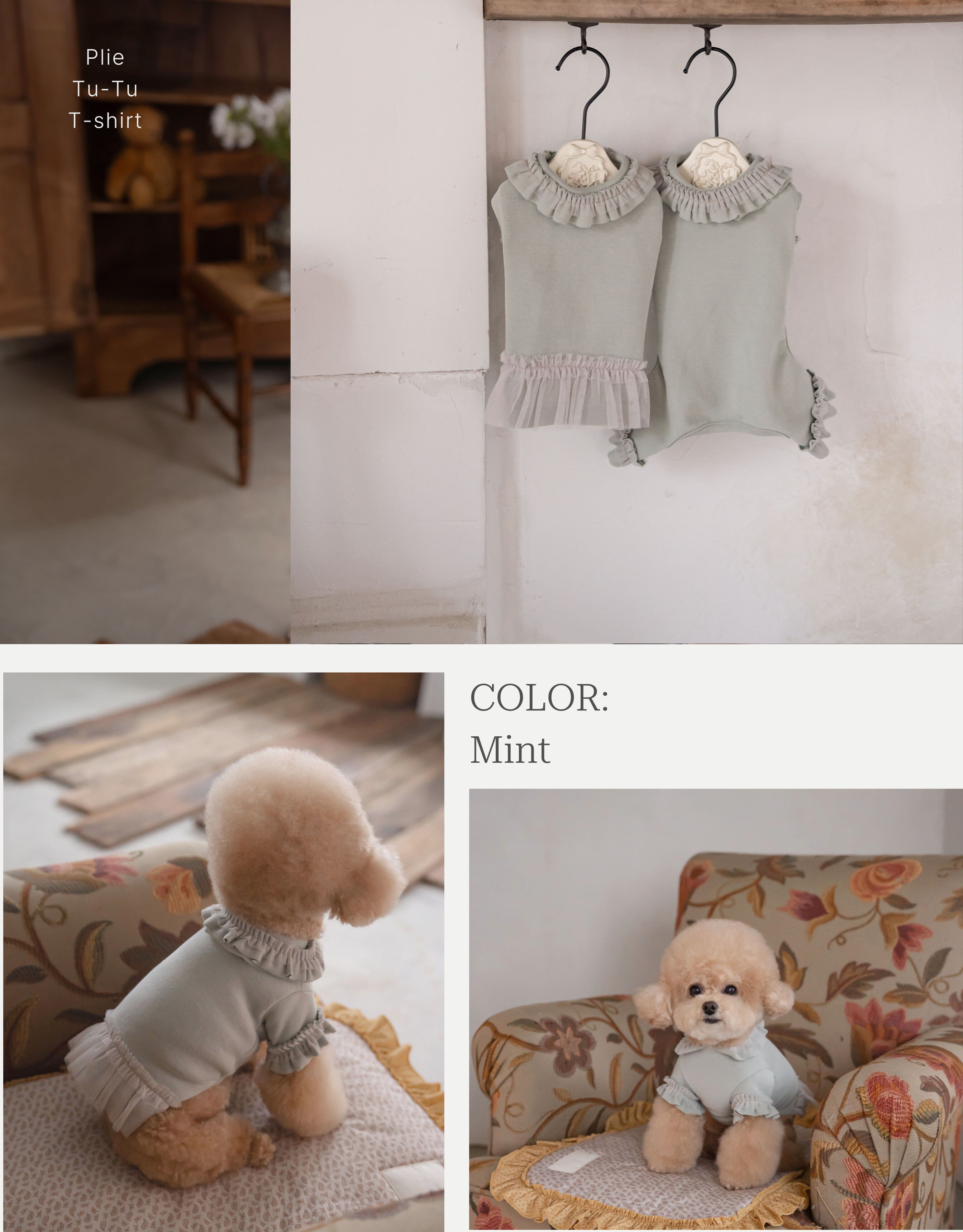 法式的芭蕾舞裙為主題的厚棉T-Shirt, 秋冬的莫蘭迪色系帶有巴黎秋季風情,蕾絲的裝飾,實穿保暖的絕佳選擇!