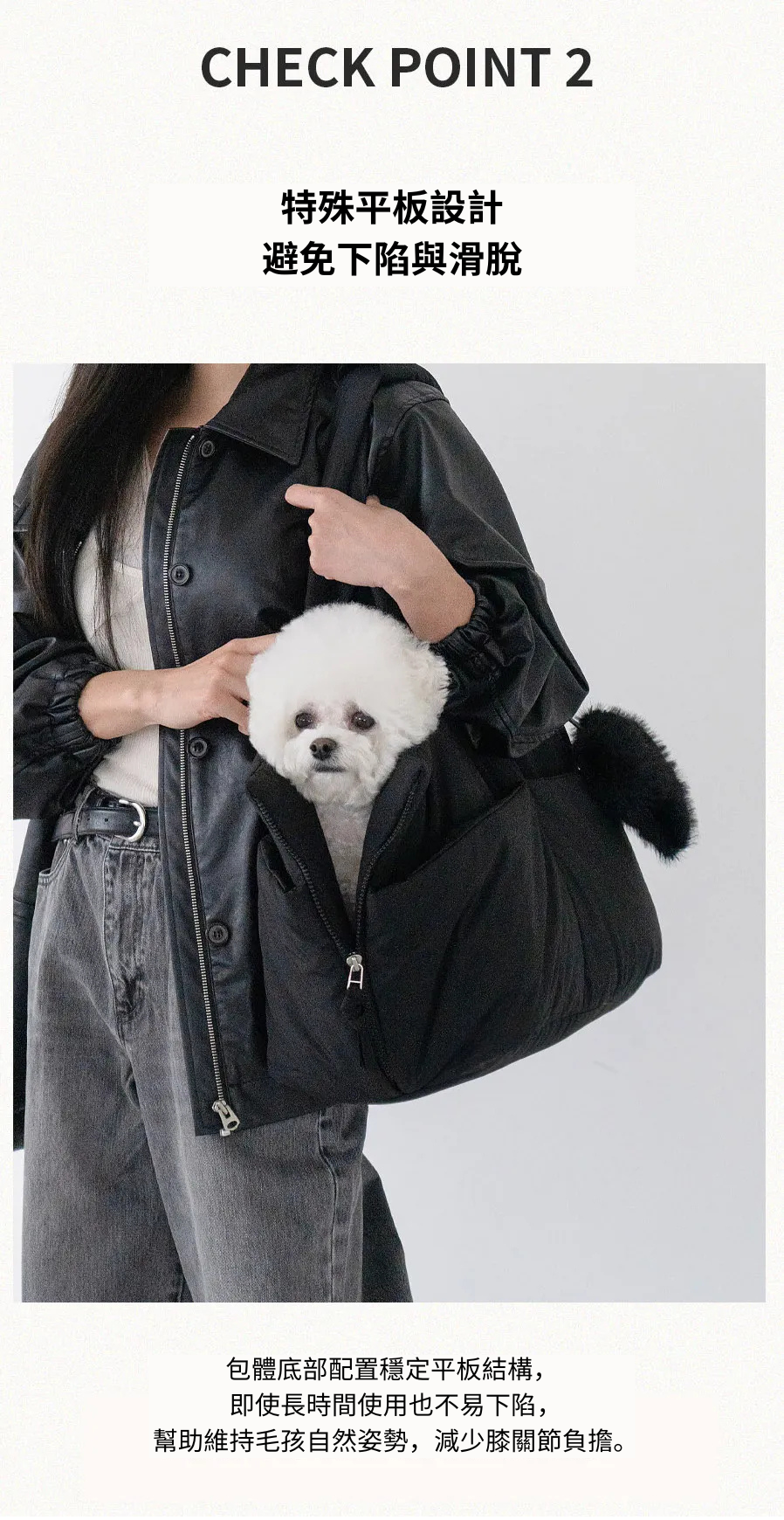 這款扇貝型寵物提袋擁有如抱枕般蓬鬆柔軟的外型,可打平攤開變身成坐墊,兼具舒適感與便利性,是近來在韓國日本也大受歡迎的人氣包款。