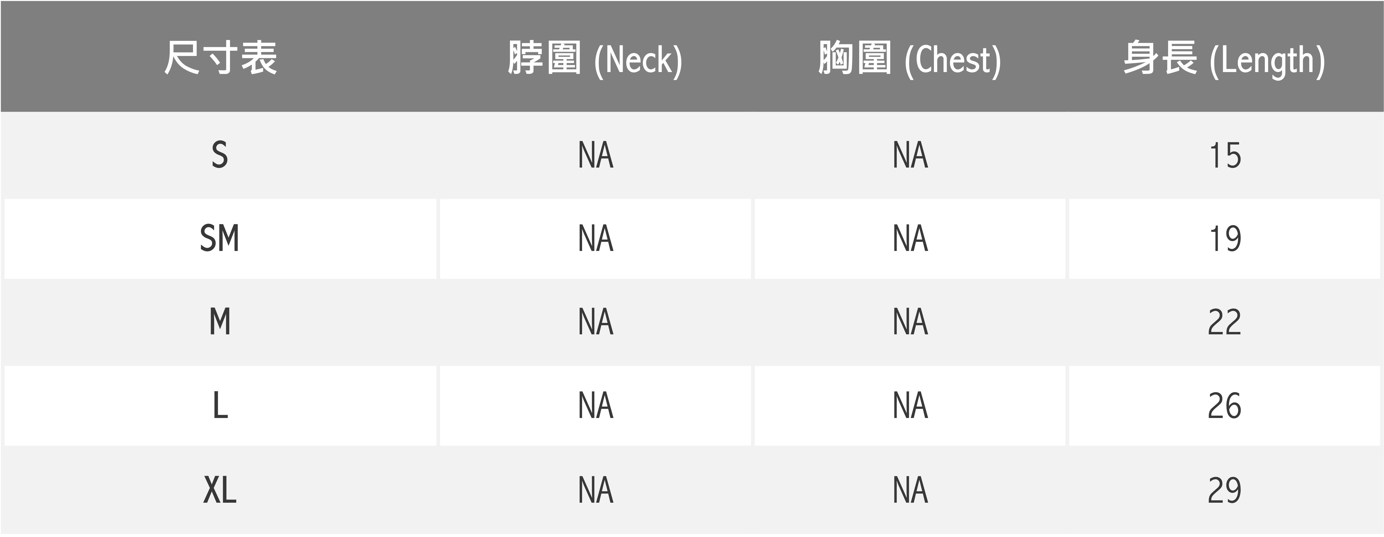 尺寸表 (本款式請以衣長為挑選尺寸基準)