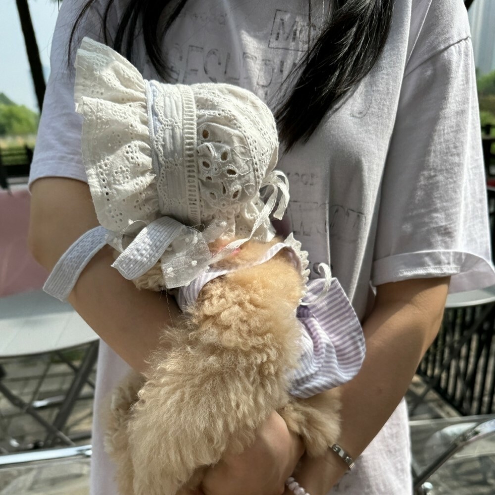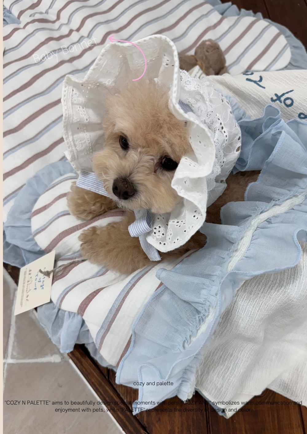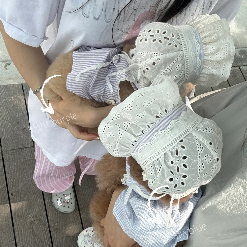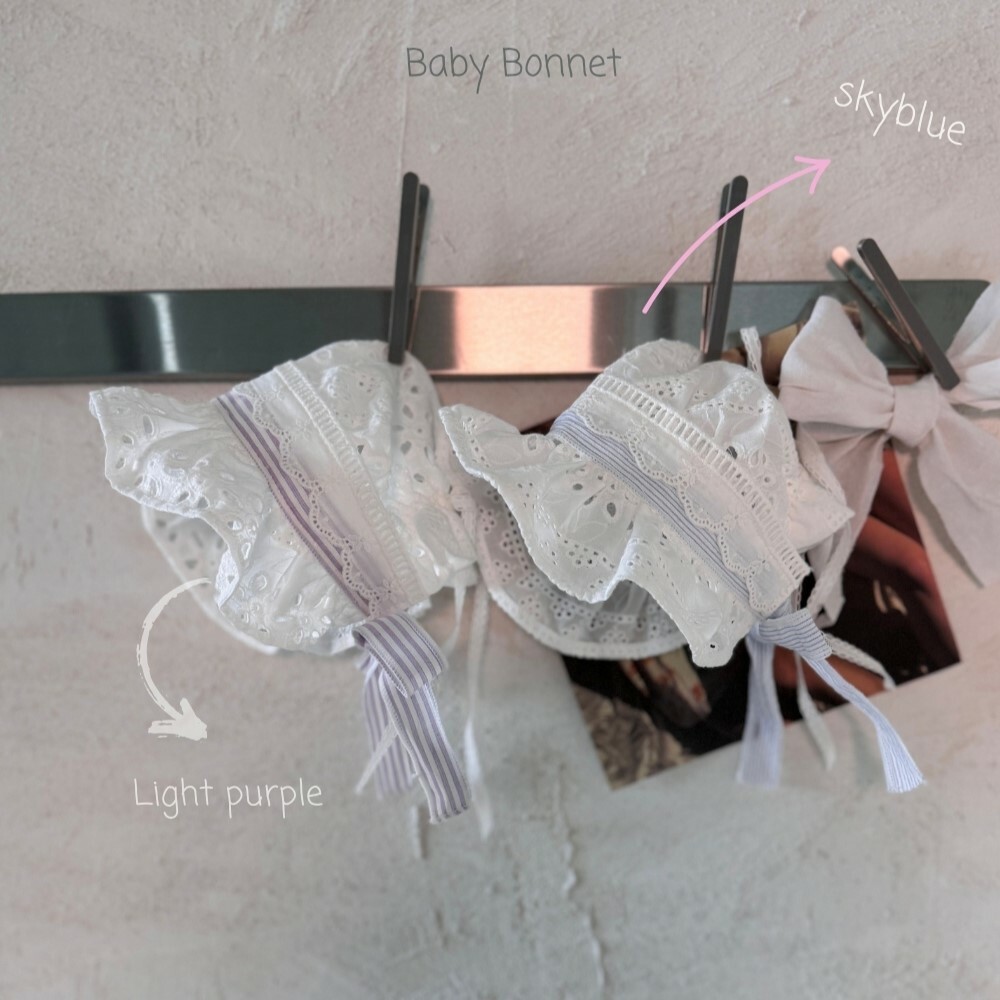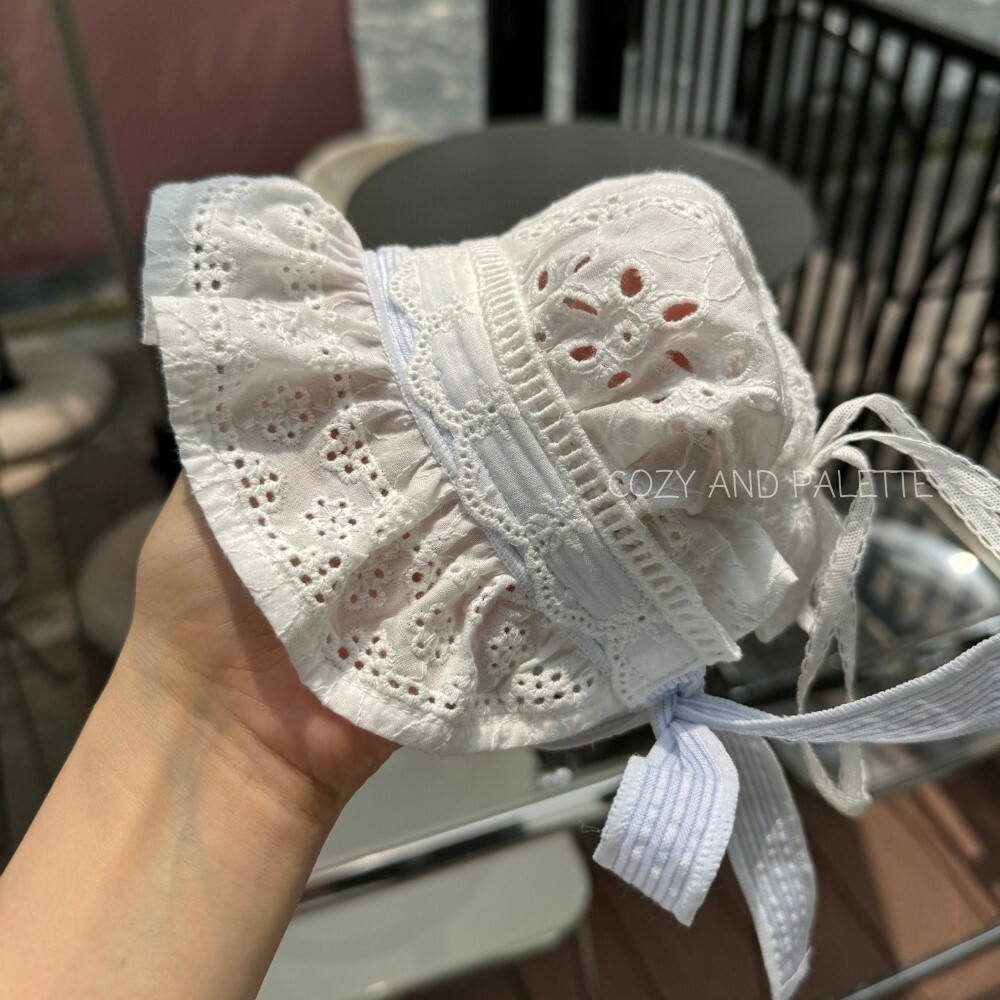 此款帽子以嬰兒帽為概念設計,純棉蕾絲簍空設計,透氣柔軟舒適,加上條紋緞帶設計,有質感又可愛。