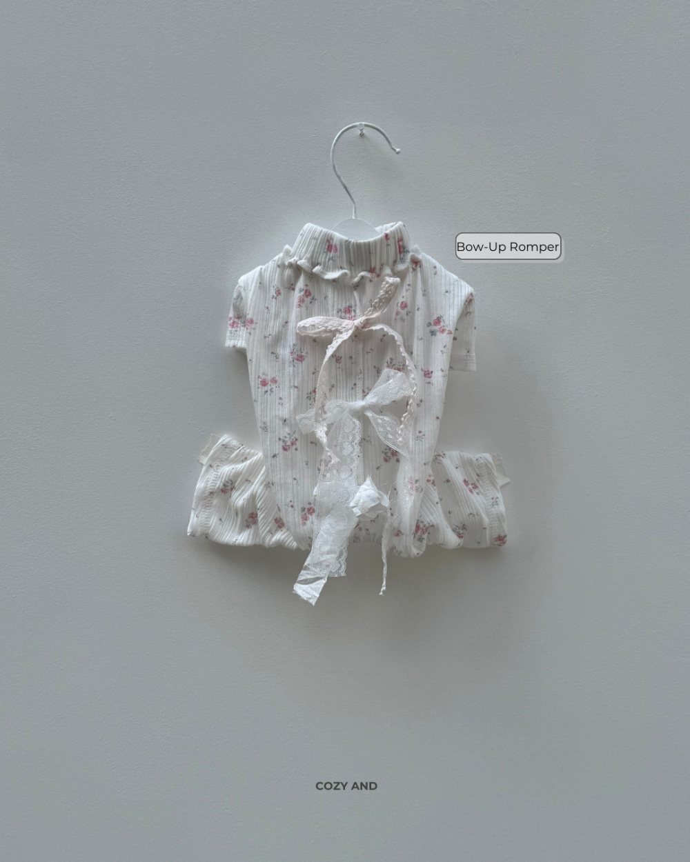 這款連身褲,前領口以立體打褶設計為焦點,背後綁上柔嫩蕾絲蝴蝶結設計,甜美中帶點輕鬆街頭感。