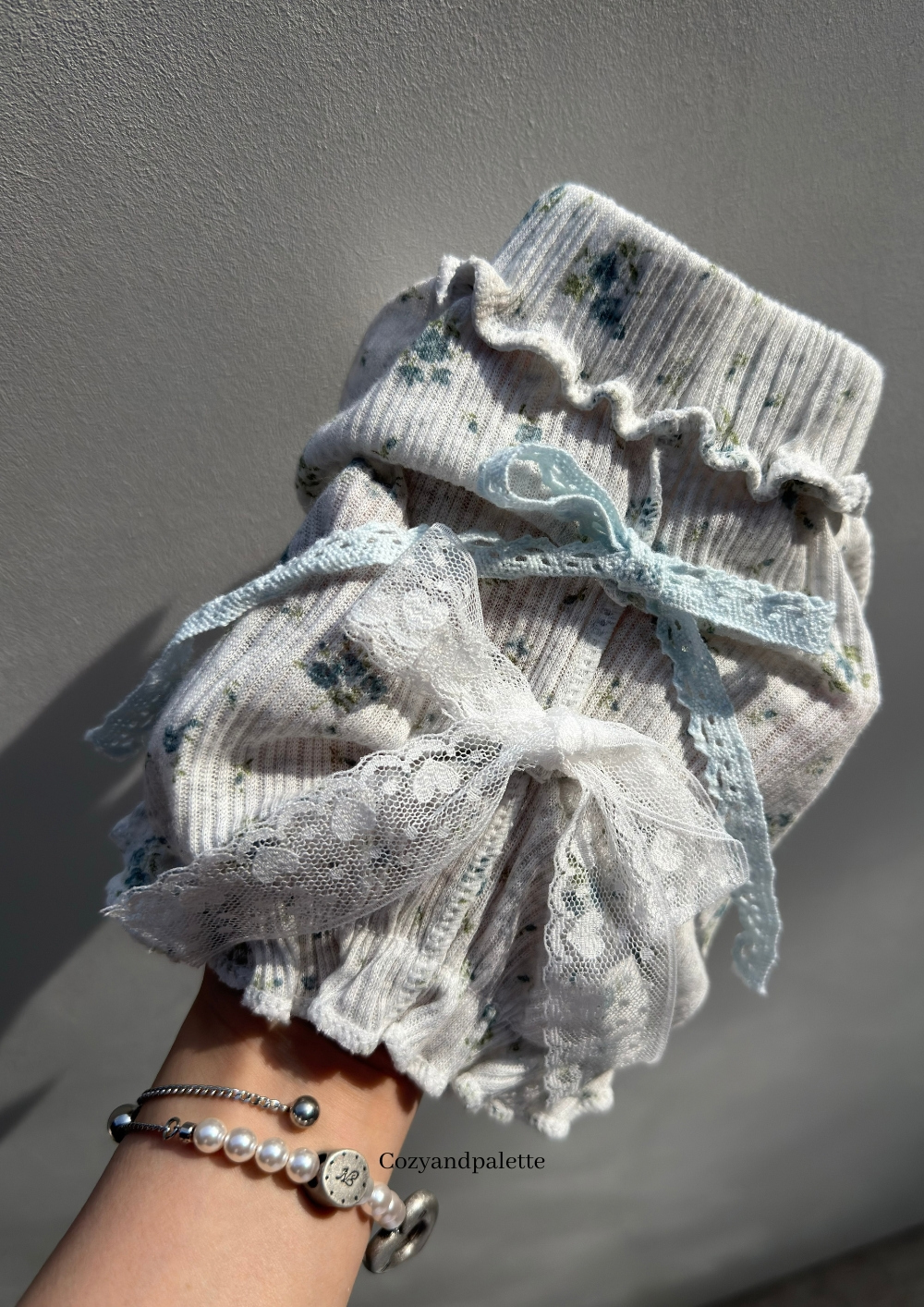 延續同系列連身褲的甜感設計,正面打褶細節設計,乾淨俐落不失細節感。最吸睛的,是背後那一條輕柔的蕾絲蝴蝶結綁帶,轉身的瞬間,溫柔值瞬間拉滿 🎀