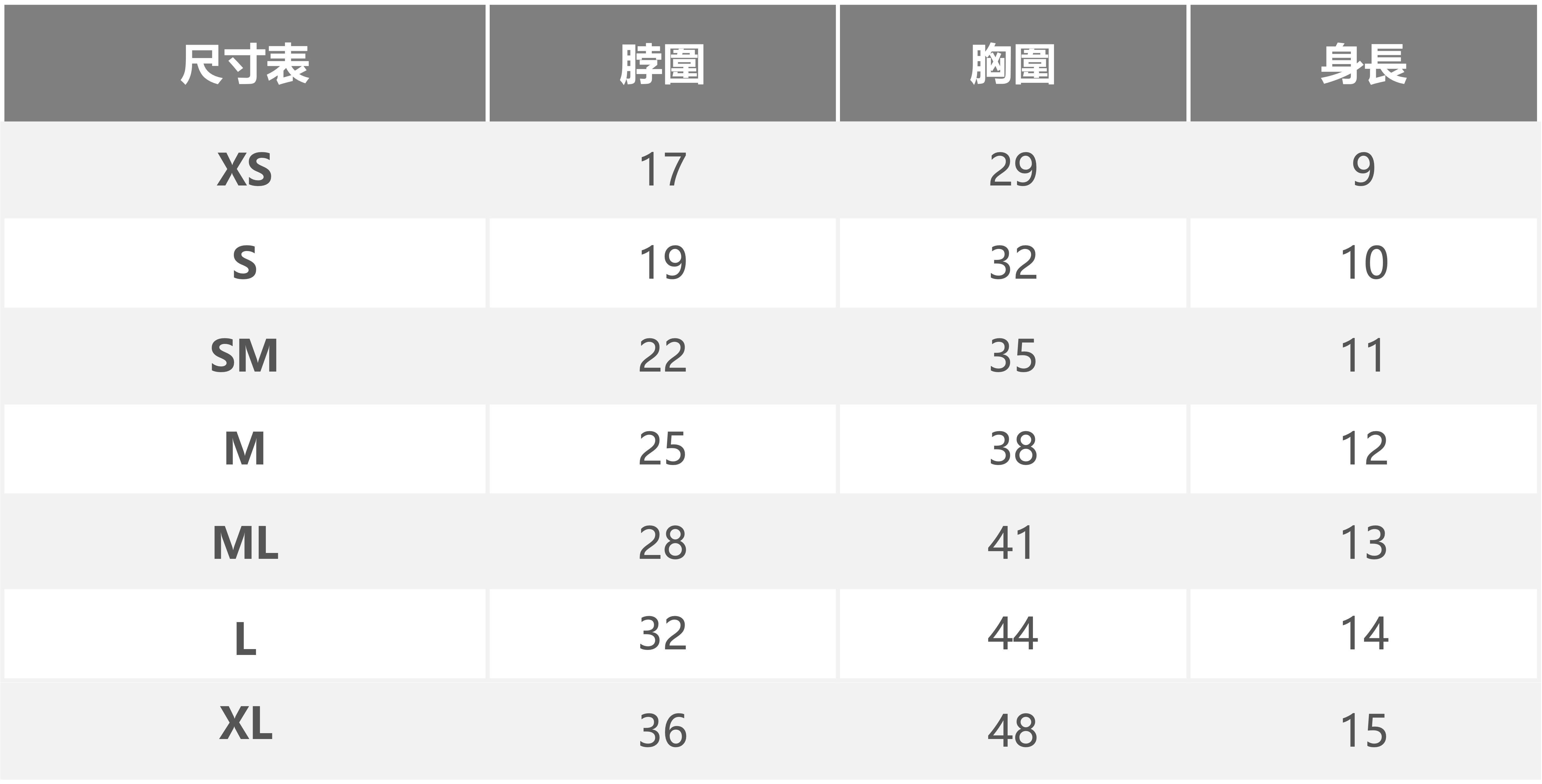 2. 尺寸選擇請以胸圍為主,衣長穿著起來的長度會因版型與狗狗身材而有不同。