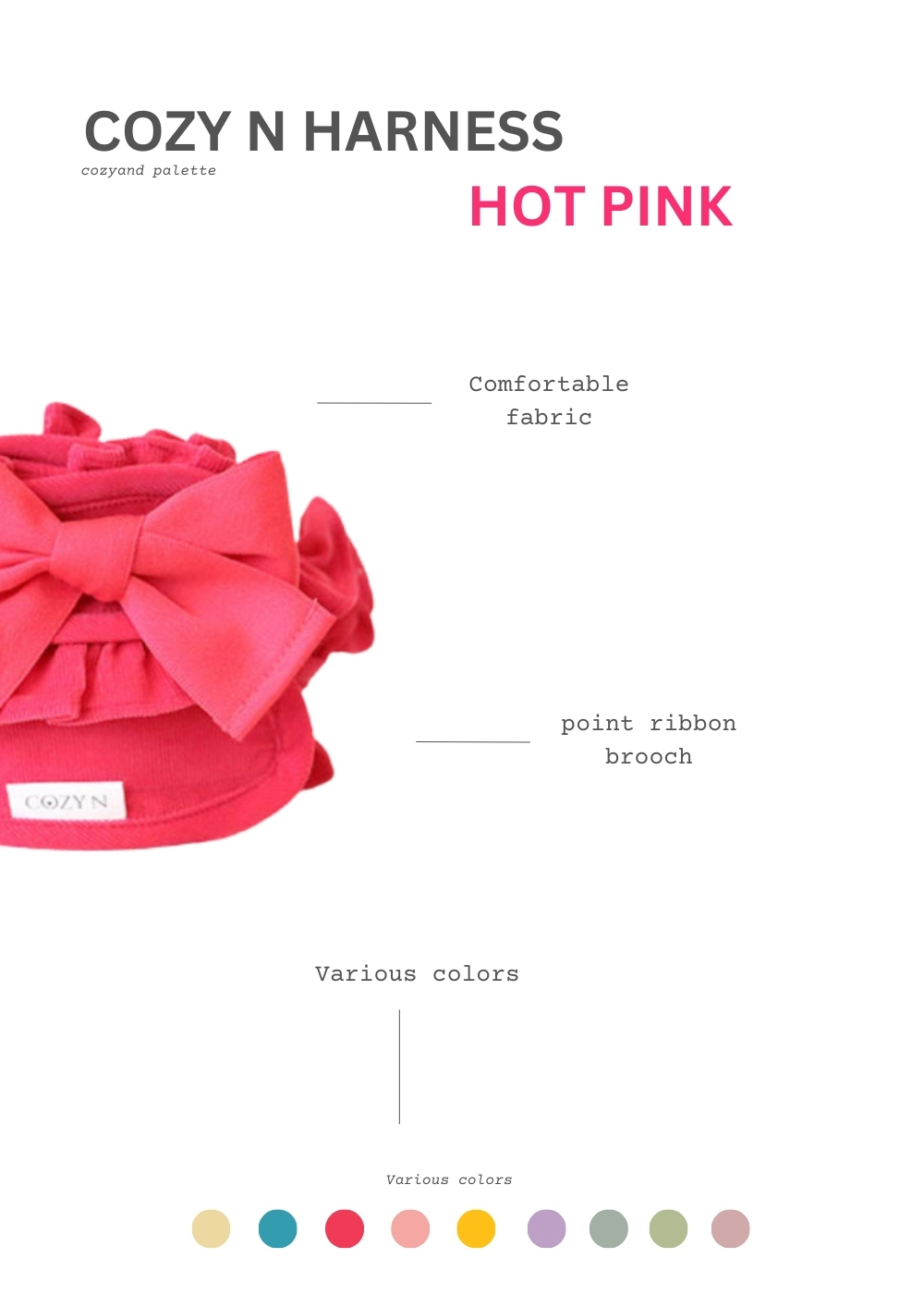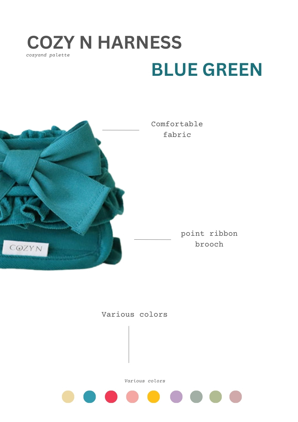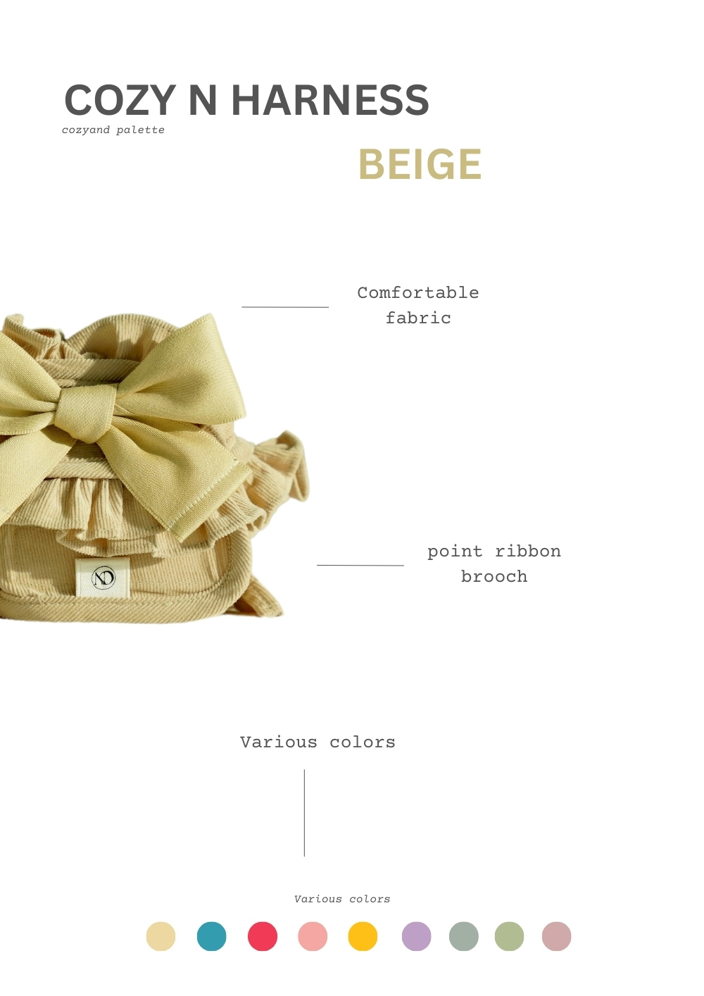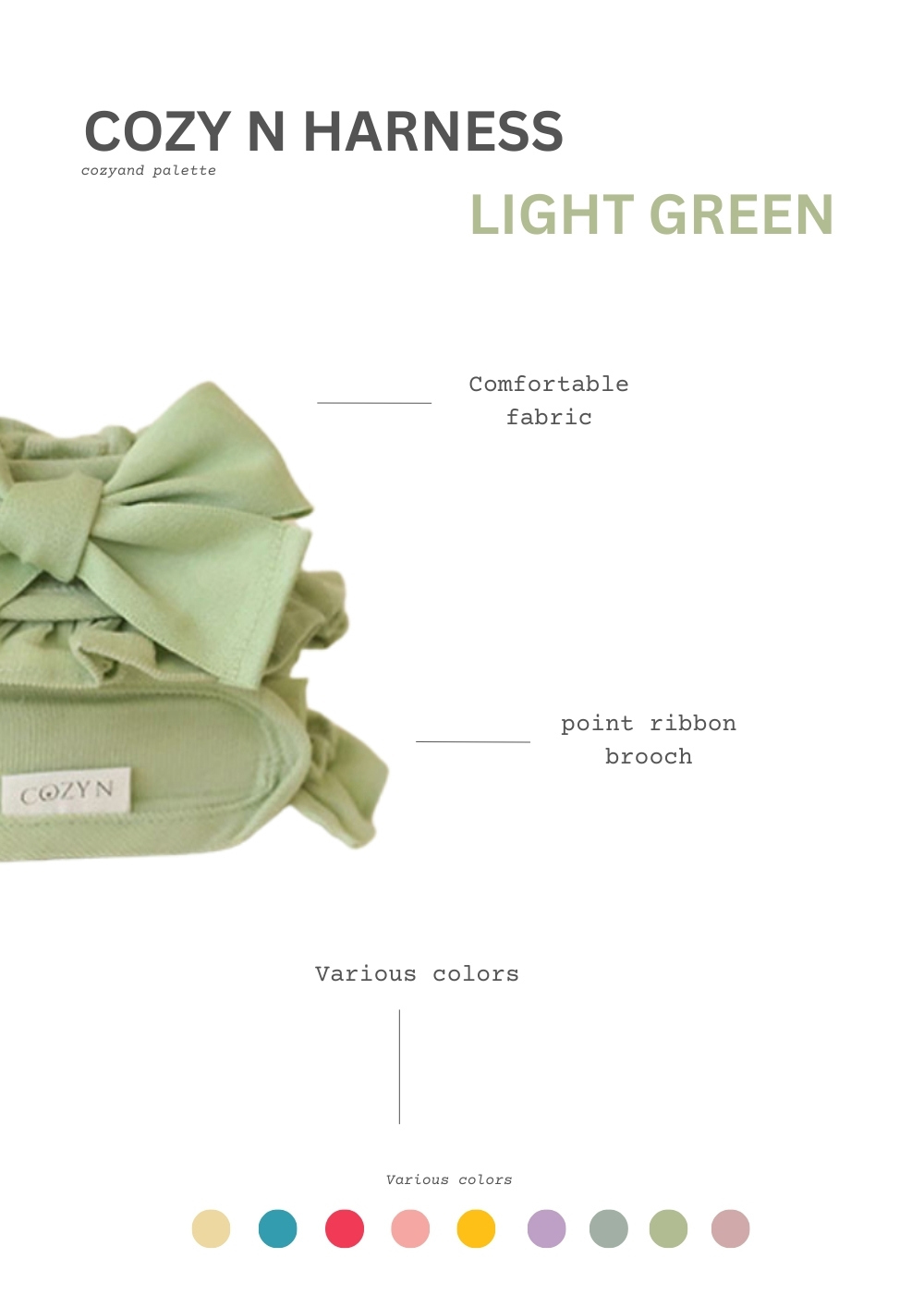 經典的調色盤多彩胸背組上市!九種顏色可以選擇。輕薄款的輕量燈芯絨面料,加上可愛的大蝴蝶結別針,建議包色。