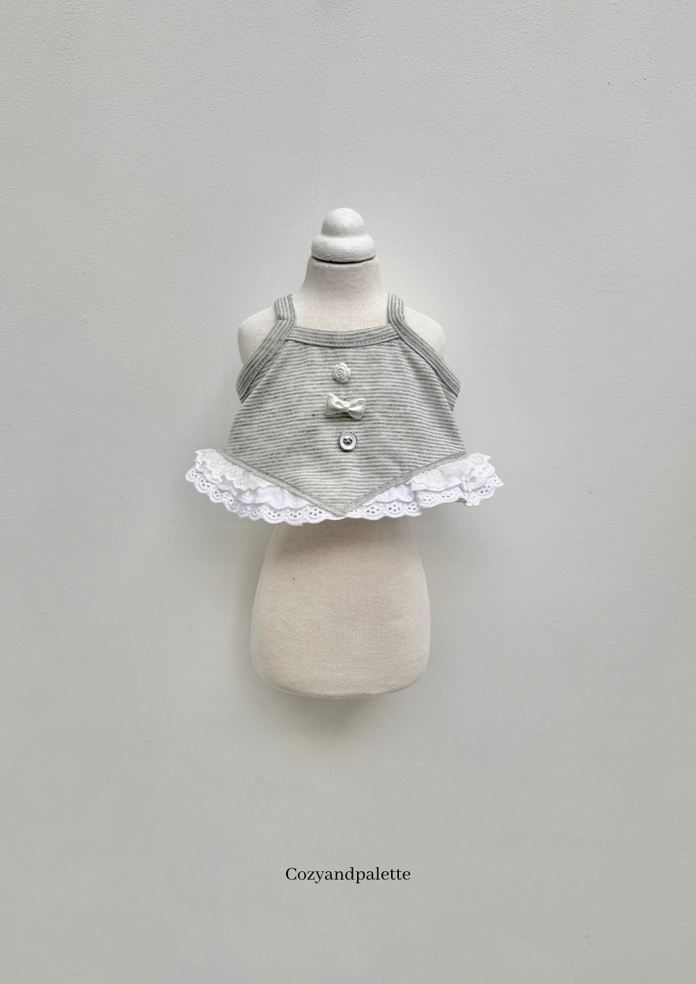 奶油條紋搭配層層蕾絲滾邊、蝴蝶結與小鈕扣,