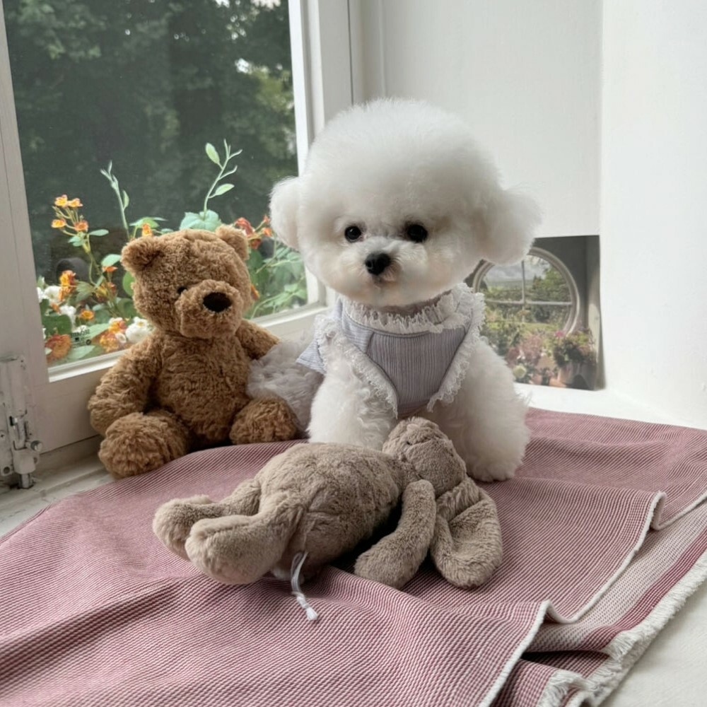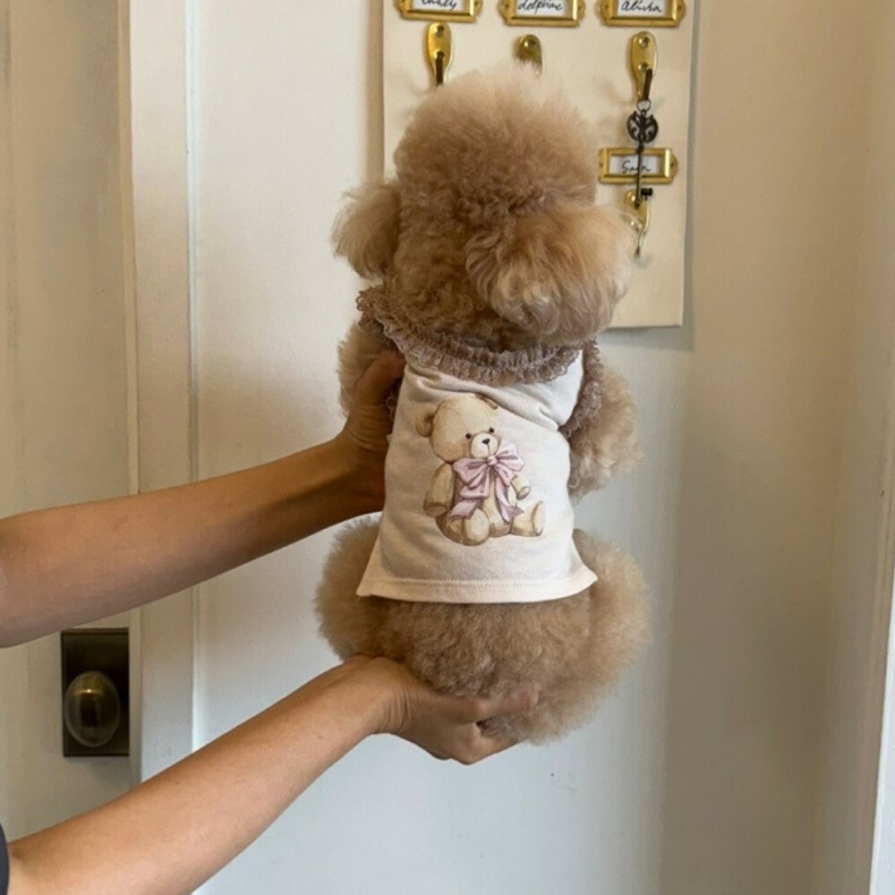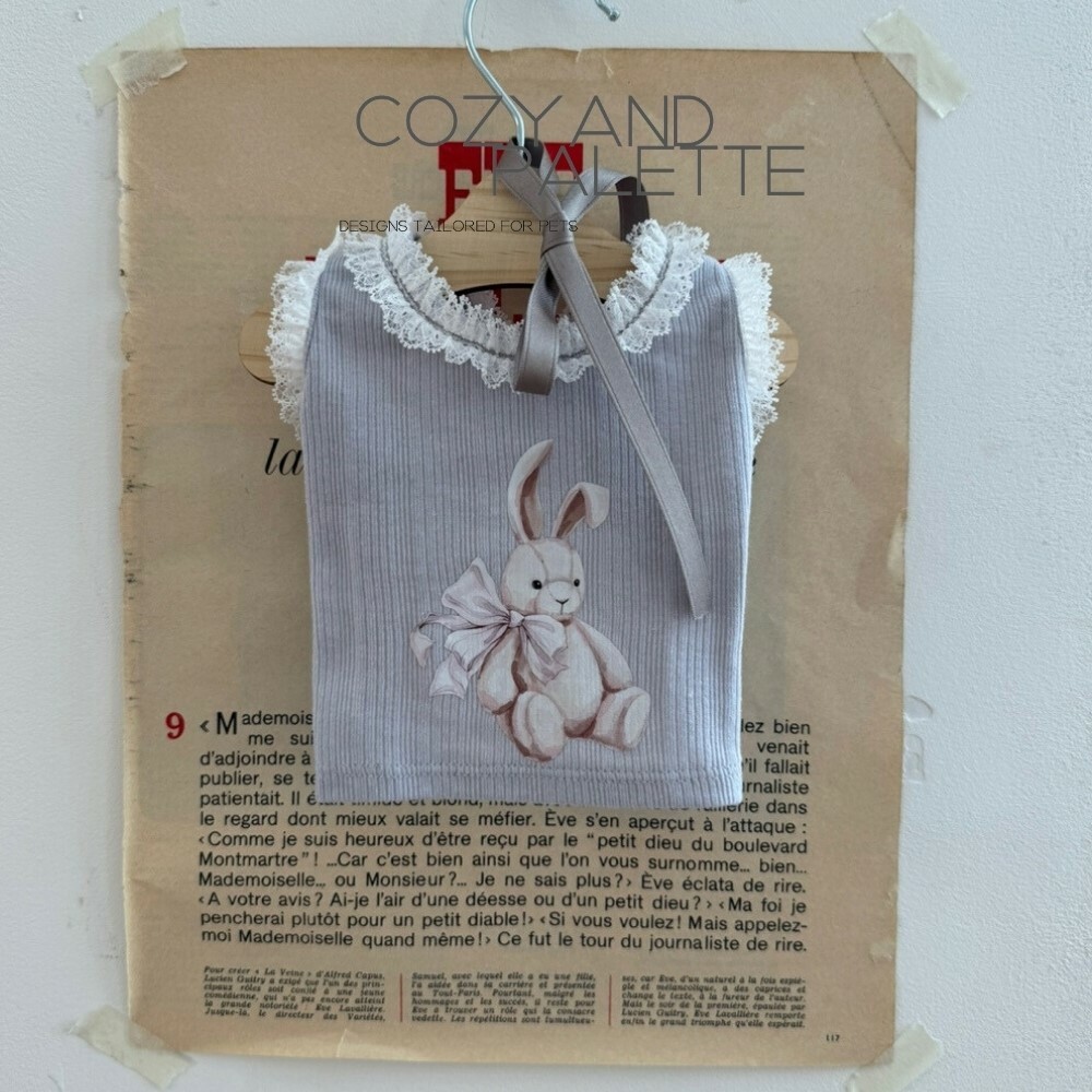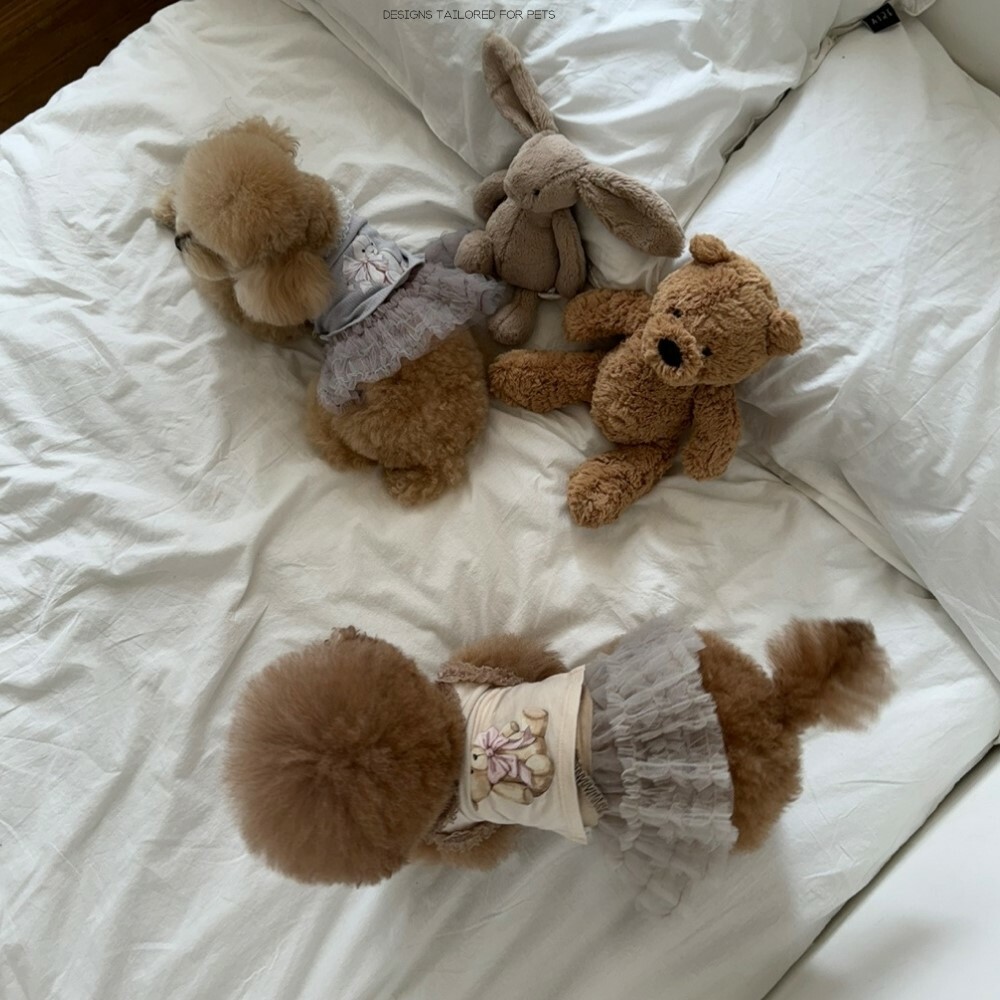 • 復古色調的熊和兔子印花營造浪漫而休閒的氛圍。
