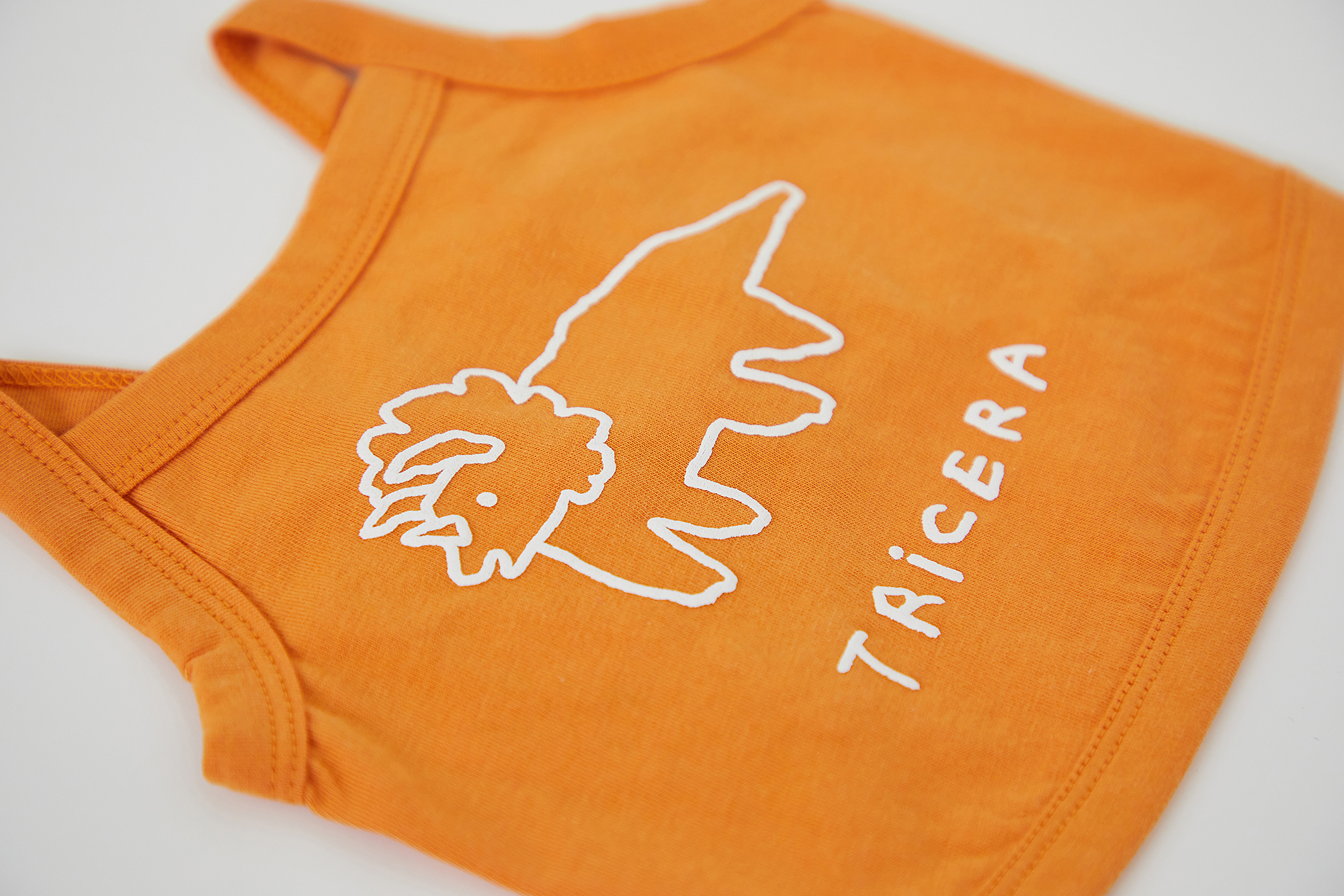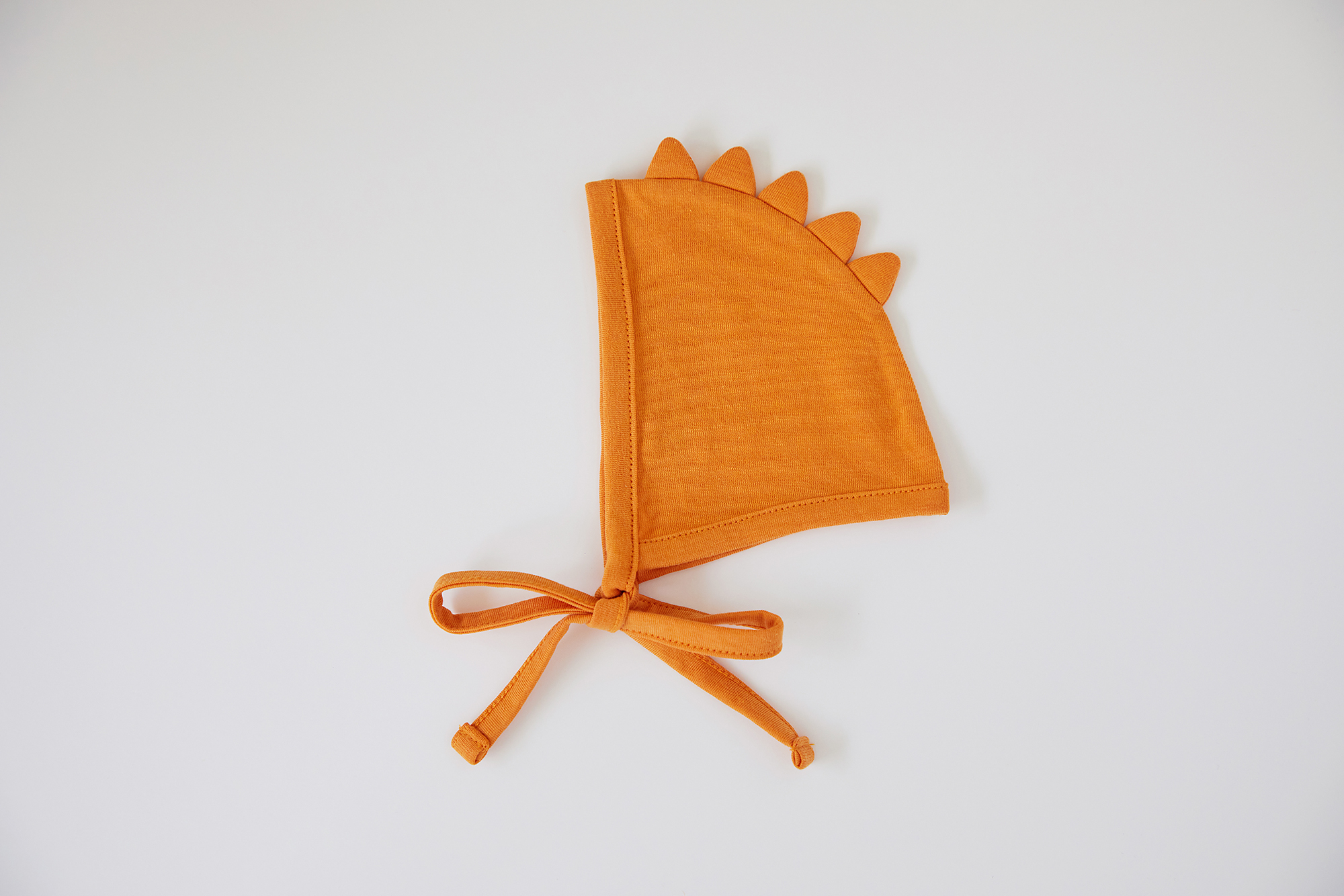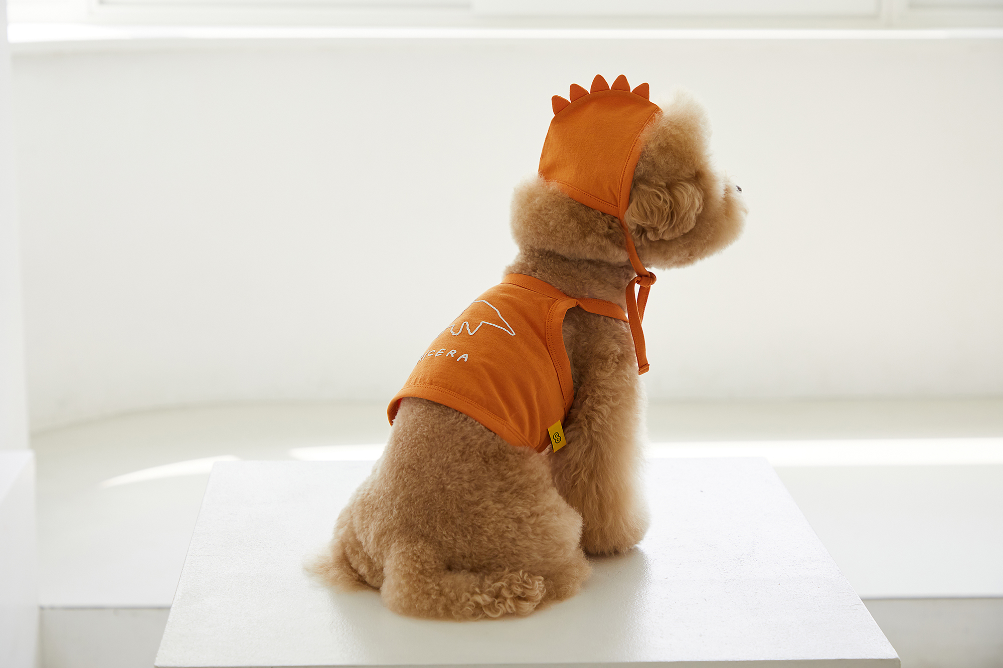 短版的細肩帶背心與小童帽組,清新配色與呆萌恐龍,