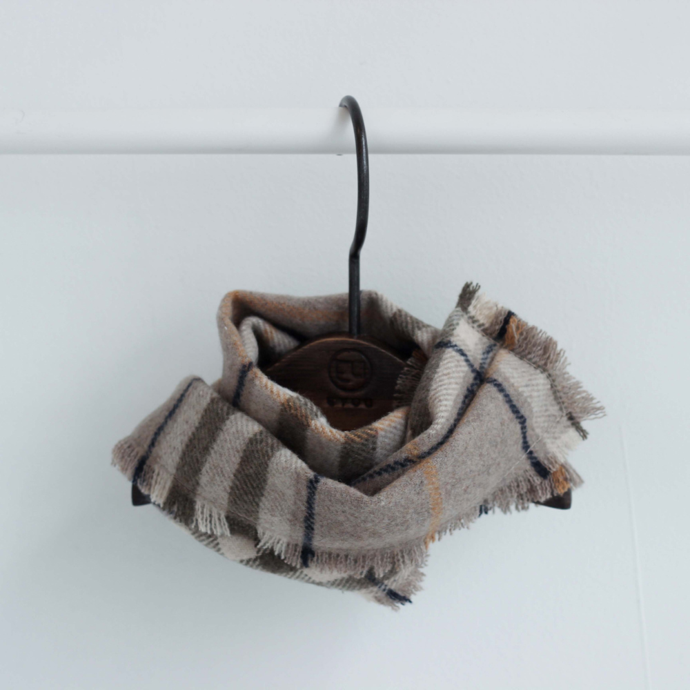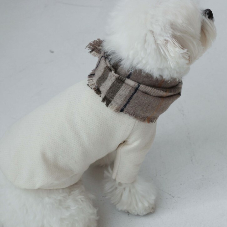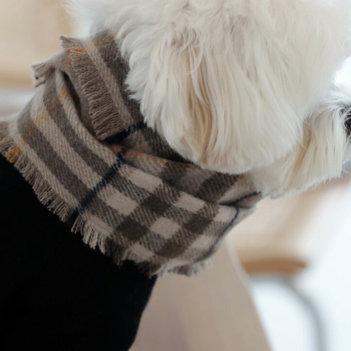 以低調細膩的格紋配色設計,圍巾尾部線條經過精緻車縫處理,細節上更添可愛氣息
