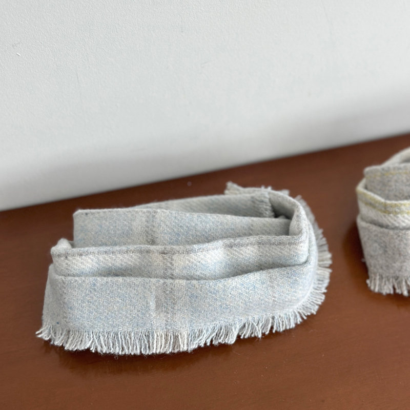 2. 圍巾本身無彈性,押釦無法調整,可選擇稍寬鬆尺寸再藉由圍脖時重疊布料來調整尺寸。