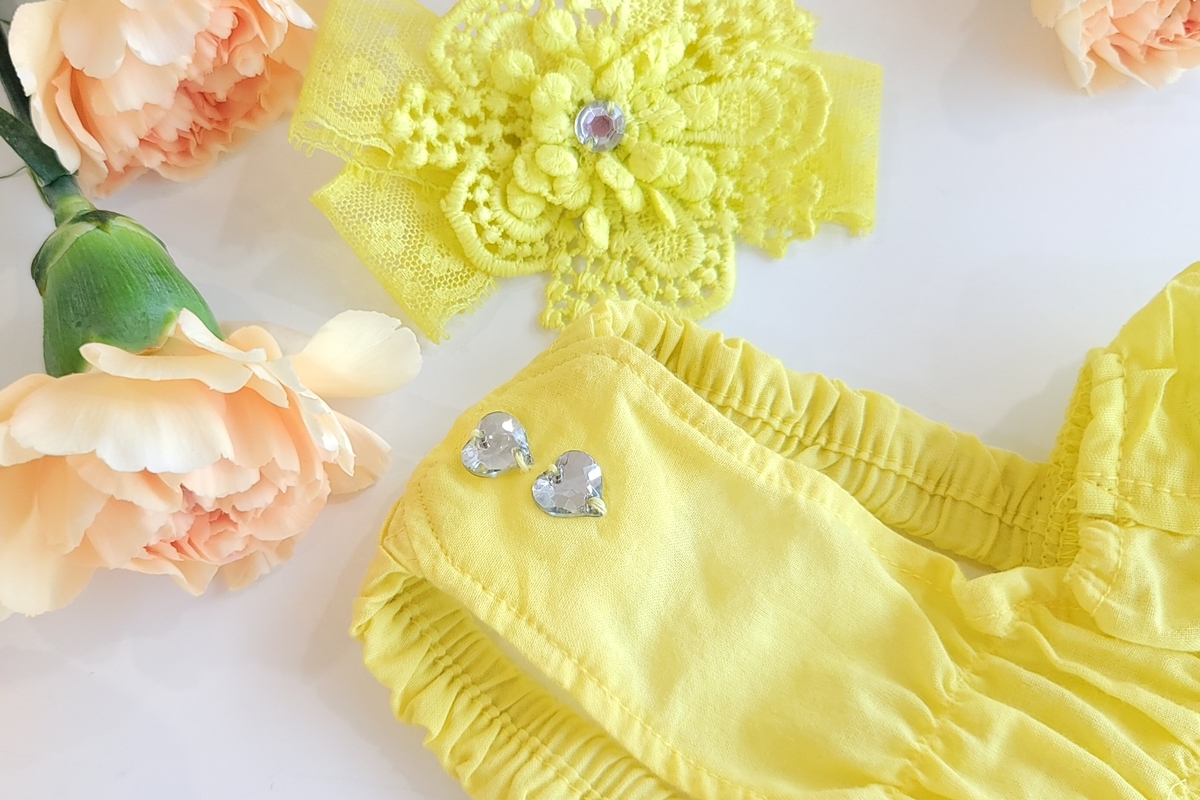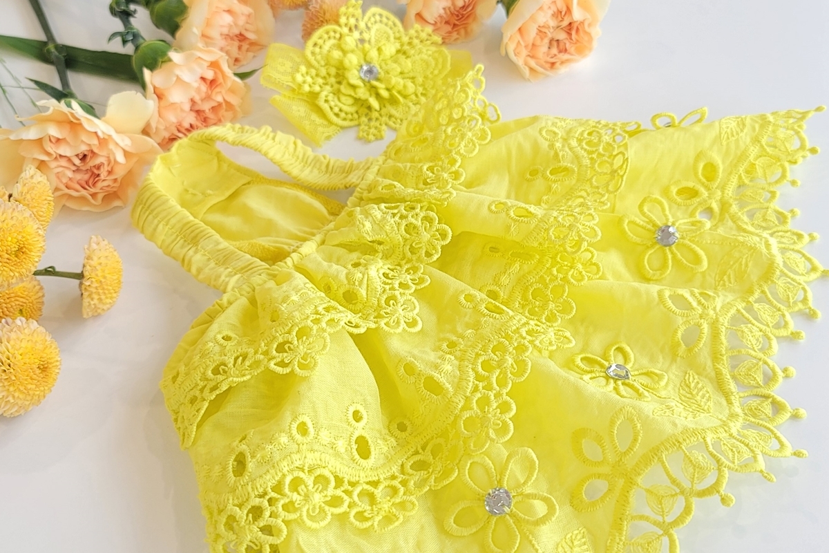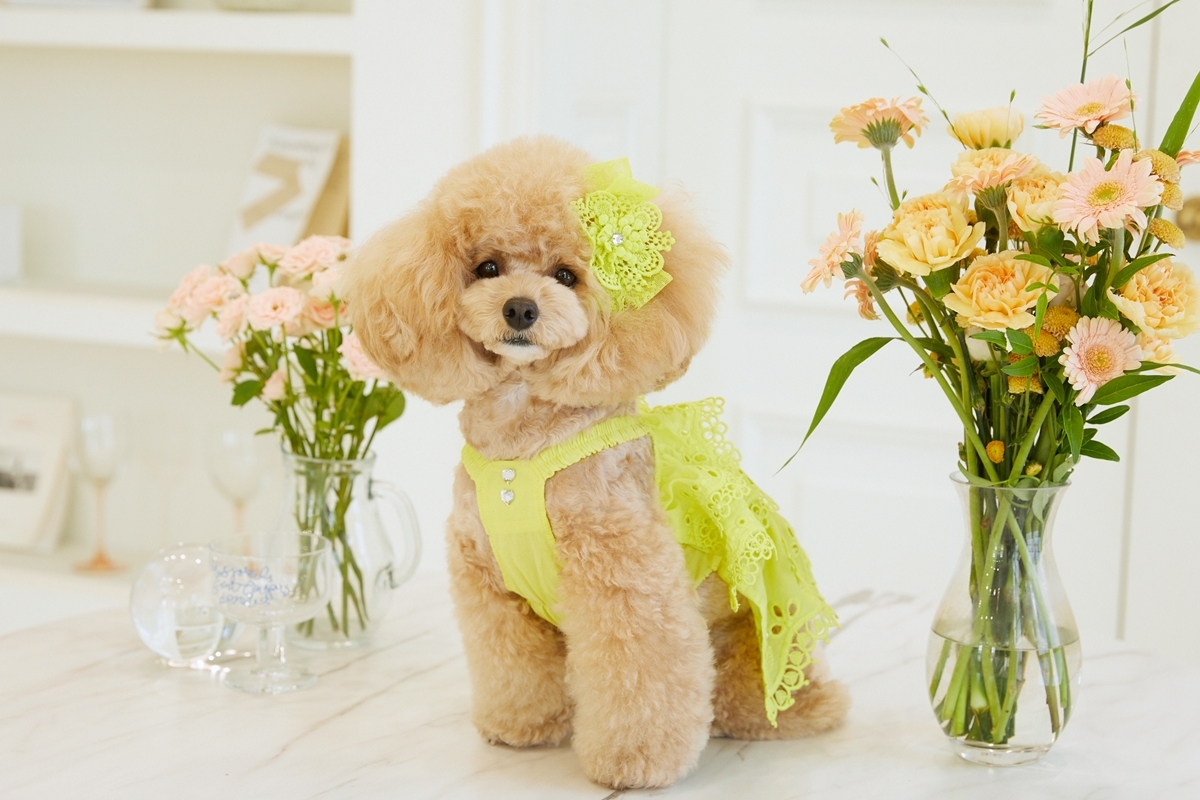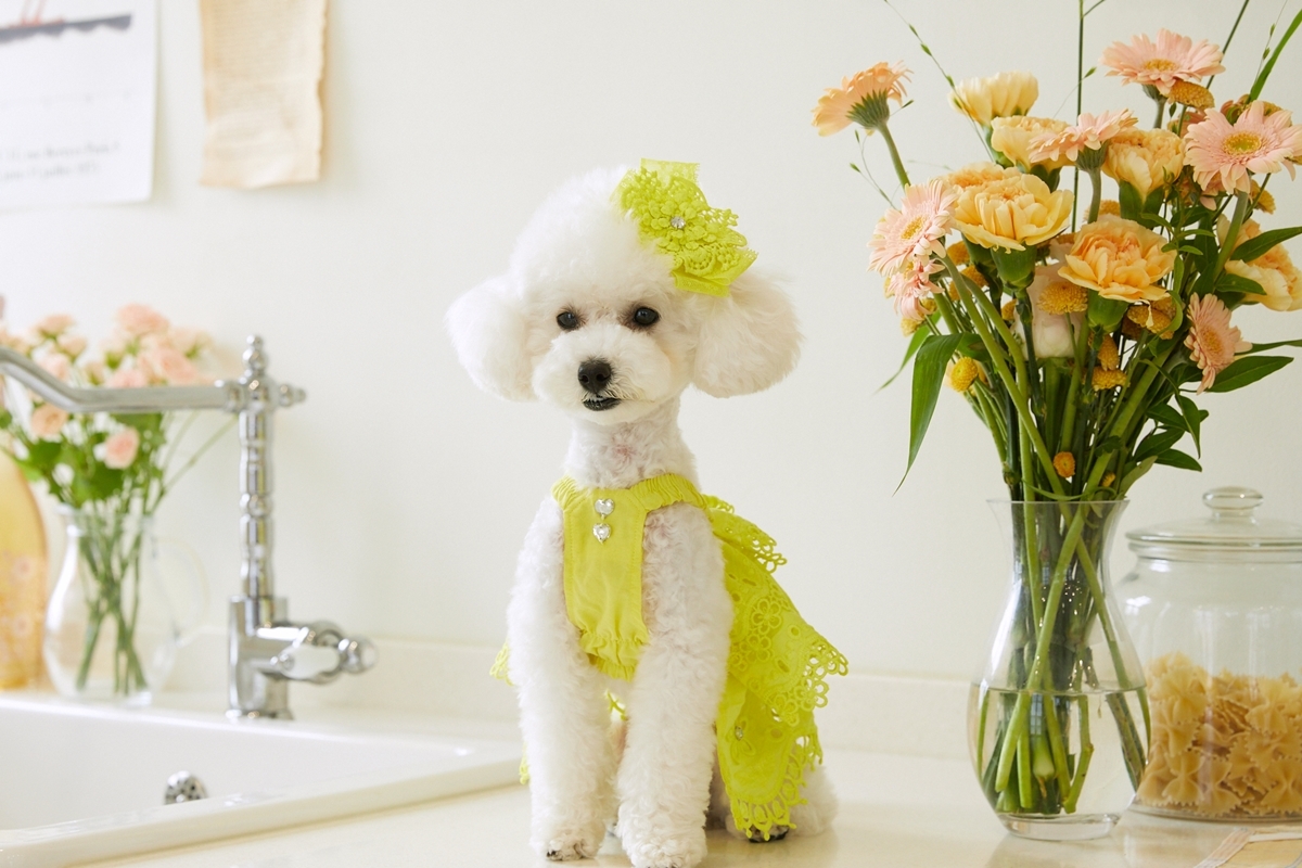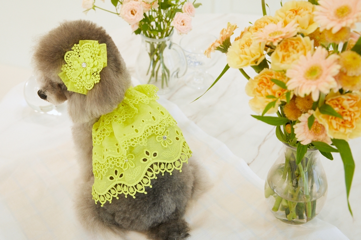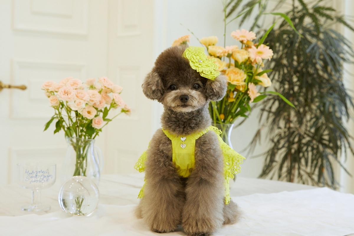 整件都是蕾絲的美麗洋裝,搭配上同款的髮飾的套裝組,展現法式浪漫風情。
