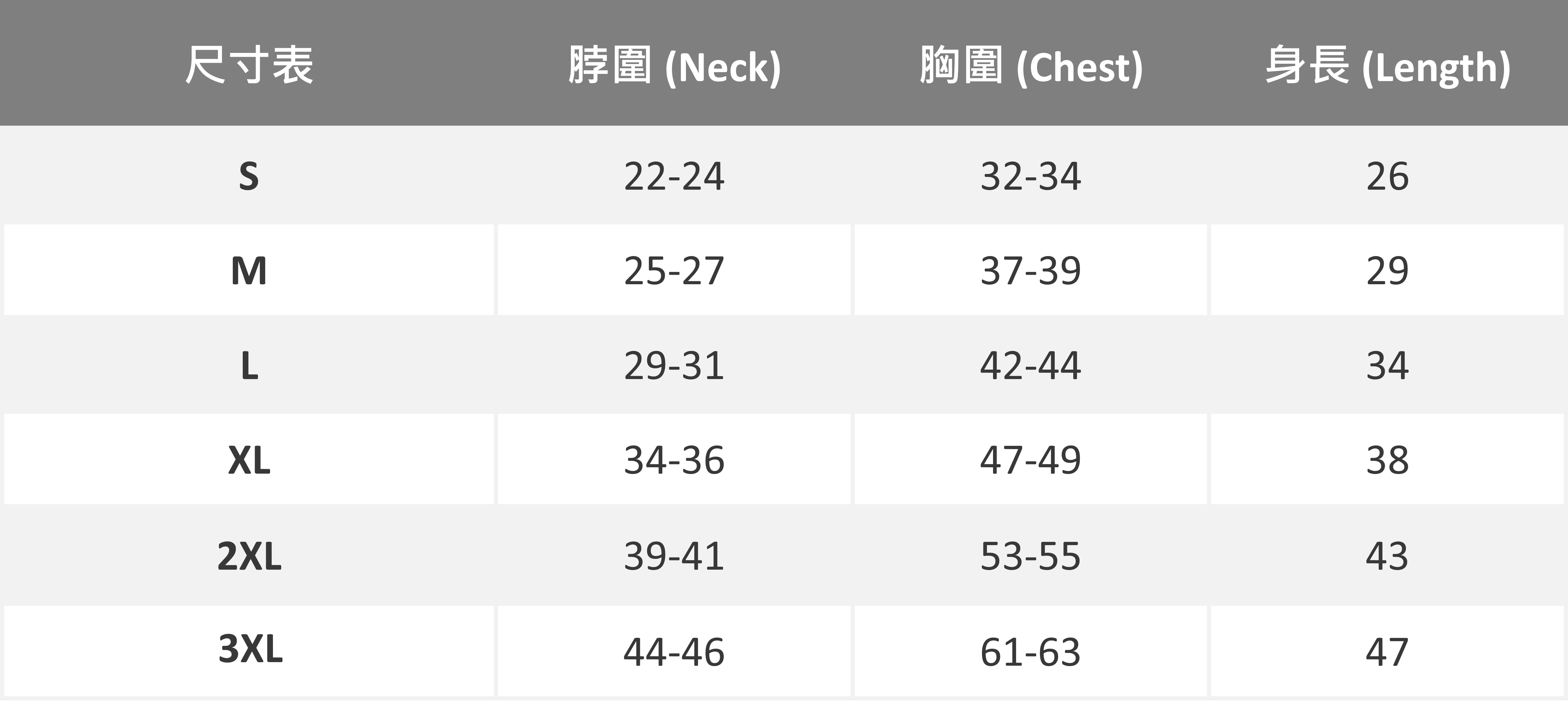 2. 尺寸選擇請以胸圍為主,衣長穿著起來的長度會因版型與狗狗身材而有不同。