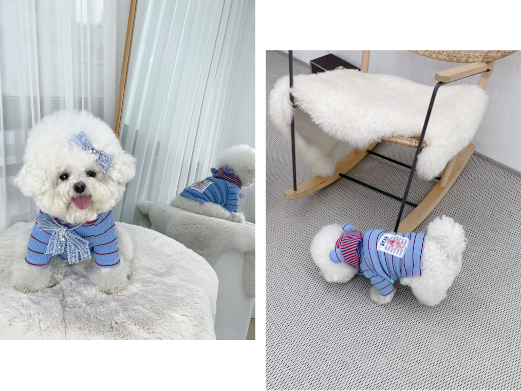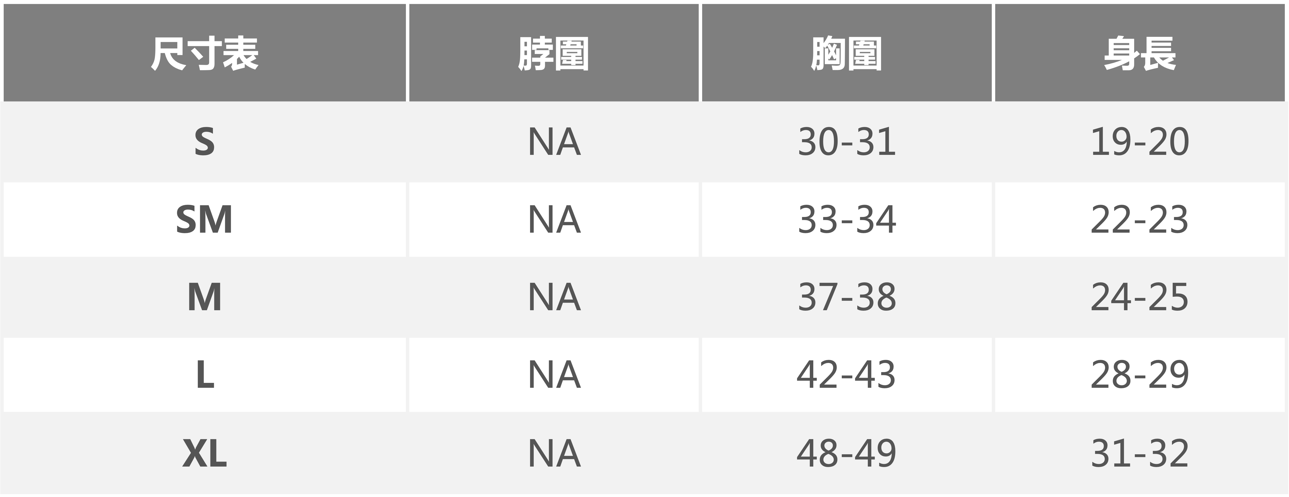 2. 尺寸選擇請以胸圍為主,衣長穿著起來的長度會因版型與狗狗身材而有不同。