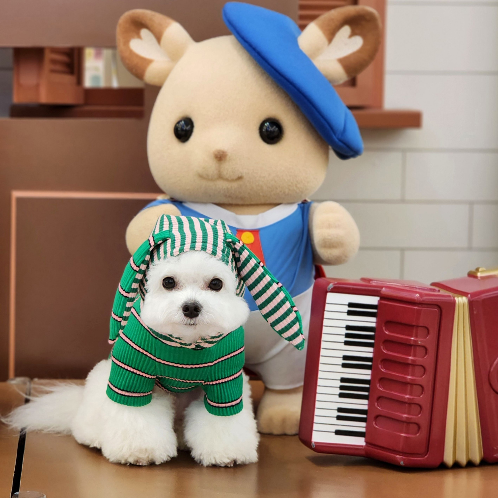 非常可愛的兔兔與小熊造型連帽衫登場!Chic的不同條紋Mix & Match配色與可愛的耳朵裝飾,背上還有潮流感的Patch,