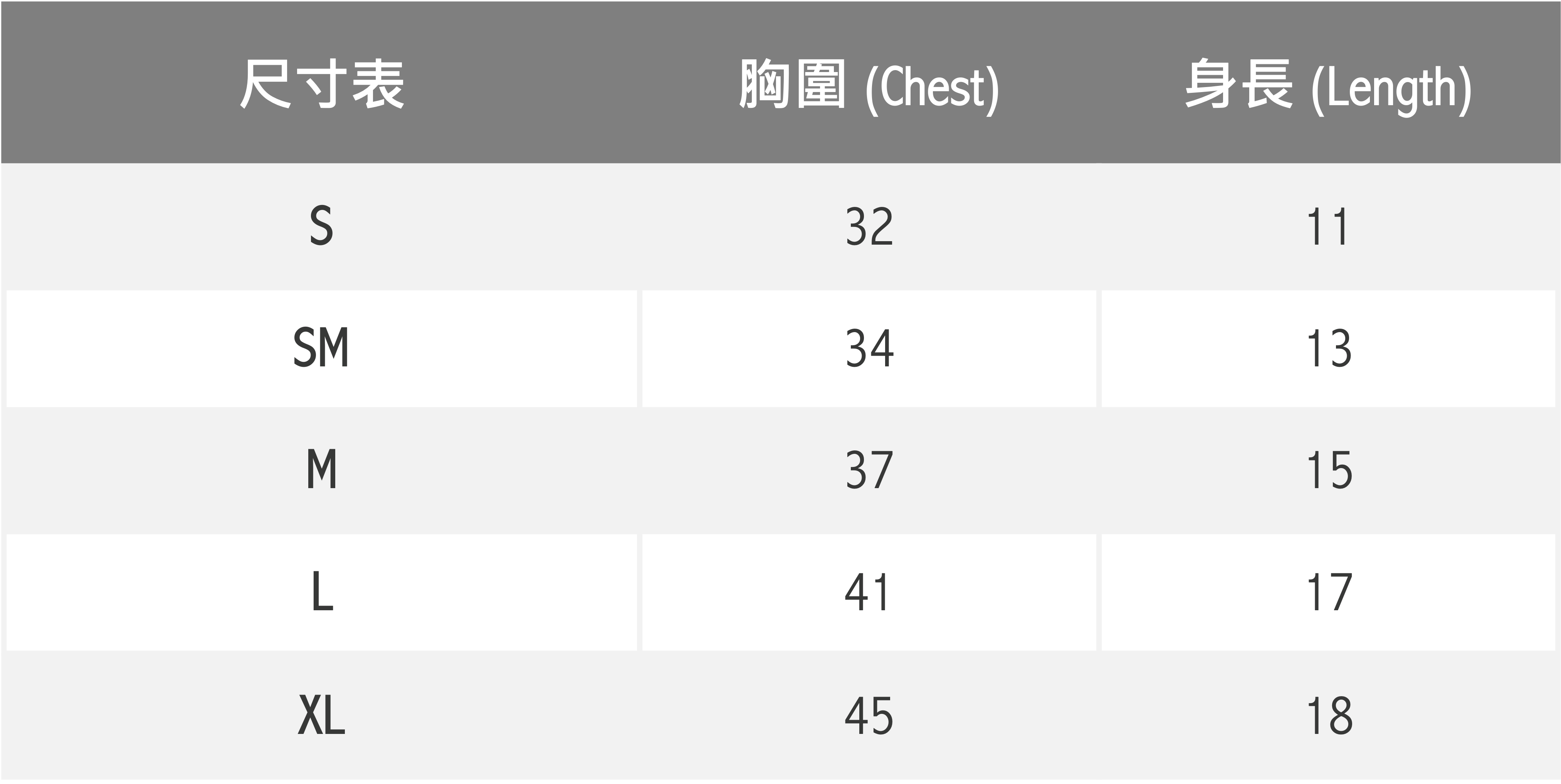 2. 尺寸選擇請以胸圍為主,衣長穿著起來的長度會因版型與狗狗身材而有不同。
