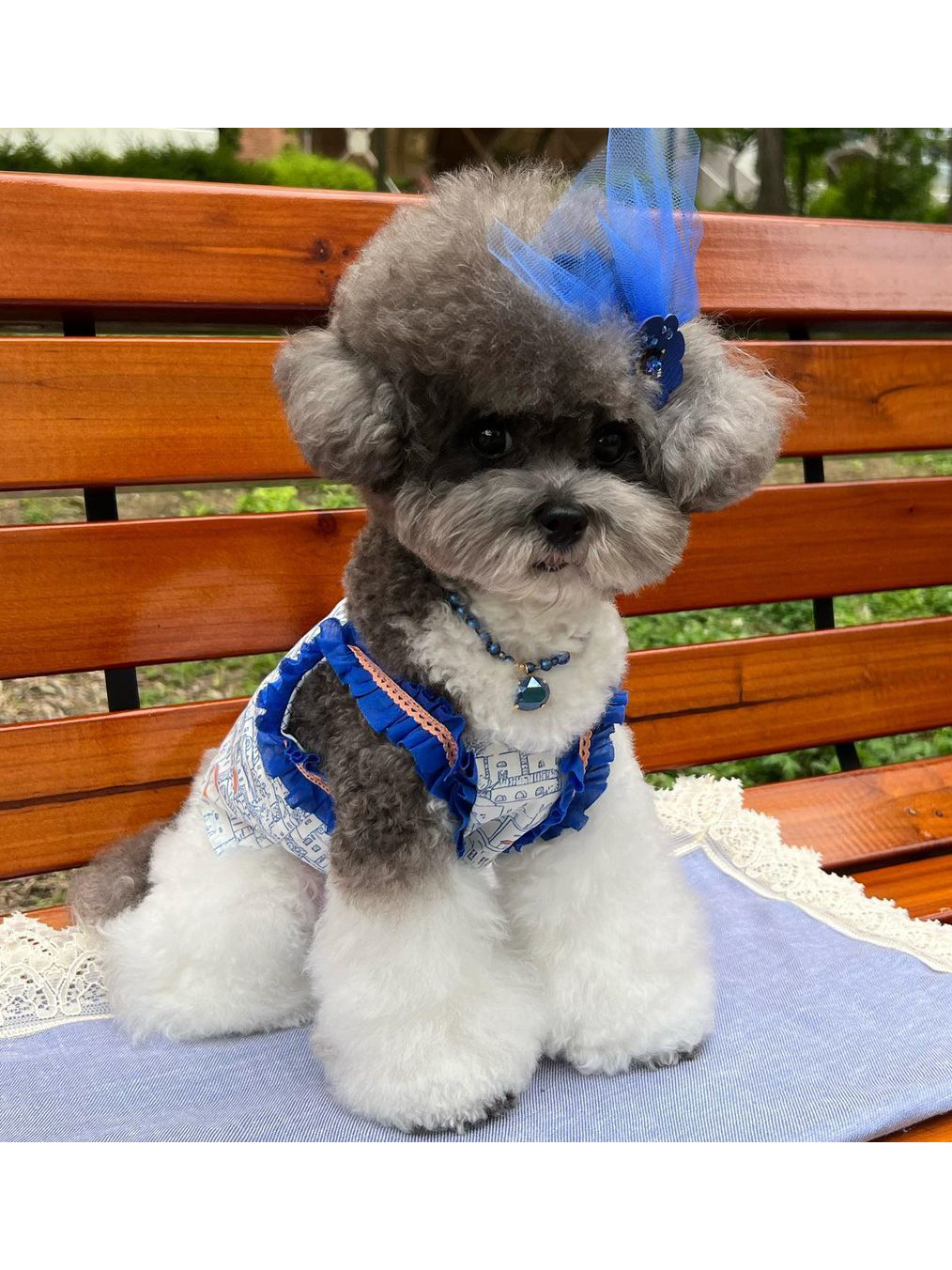 葡萄牙波爾圖城市的印花,加上Royal Blue的蕾絲滾邊,南歐風情的一款。