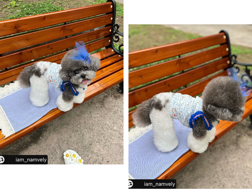 2. 尺寸選擇請以胸圍為主,衣長穿著起來的長度會因版型與狗狗身材而有不同。