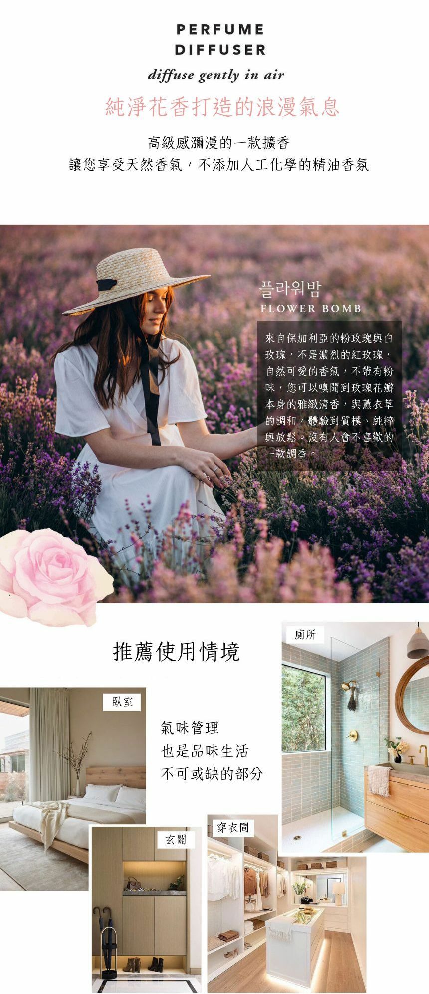 深邃的保加利亞玫瑰和薰衣草混合香調。這是一款適合所有季節的香味,帶有粉紅色或白色玫瑰的香味,而不是紅玫瑰的香味。這是一個可愛的花香系列,與現有的粉狀玫瑰香不同,它是一種自然、樸實的玫瑰花瓣香。
