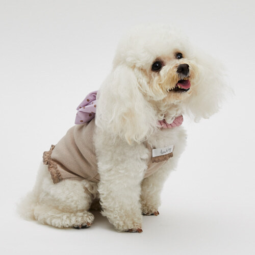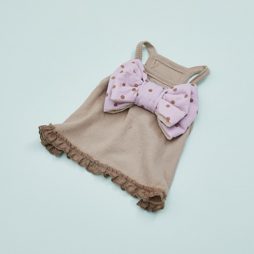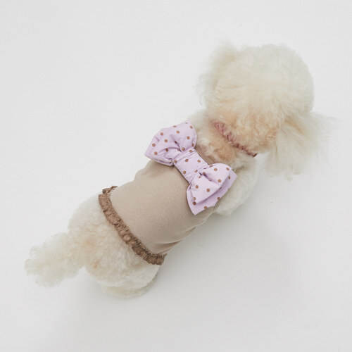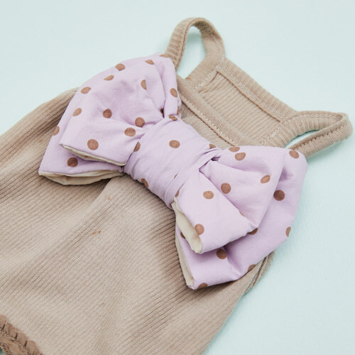 背面以一條 薰衣粉色系的波點緞帶大蝴蝶結為亮點,為整體造型增添滿滿儀式感與可愛氣場。