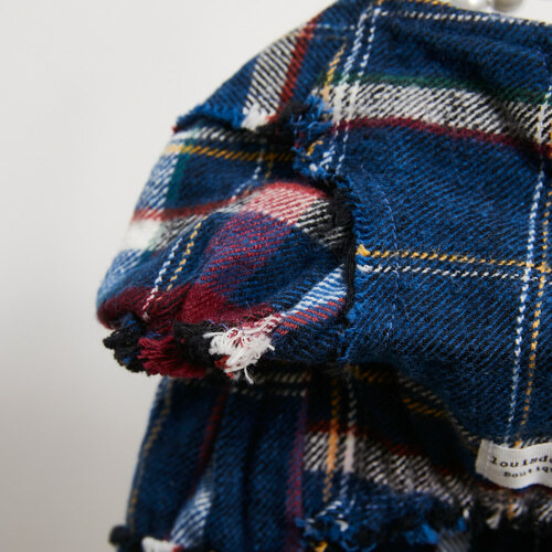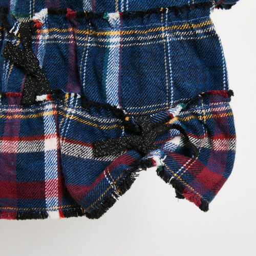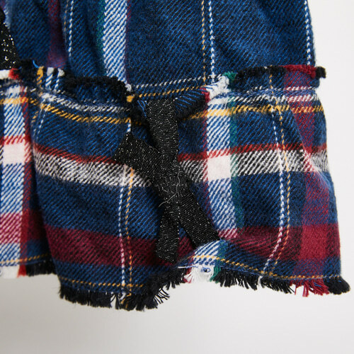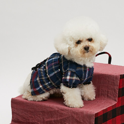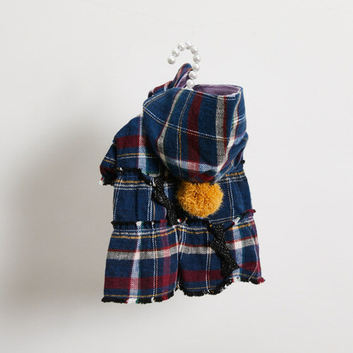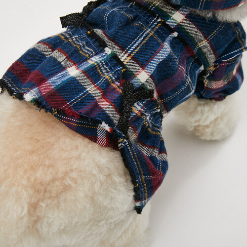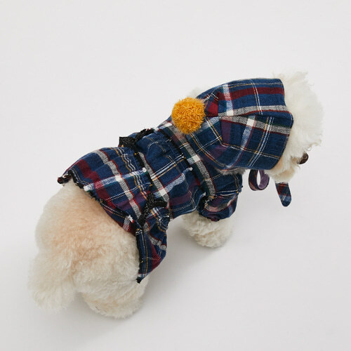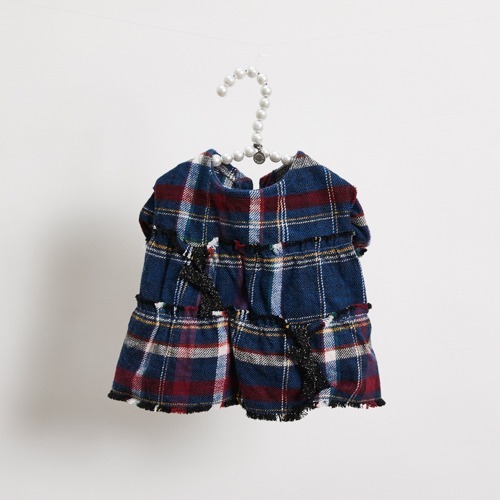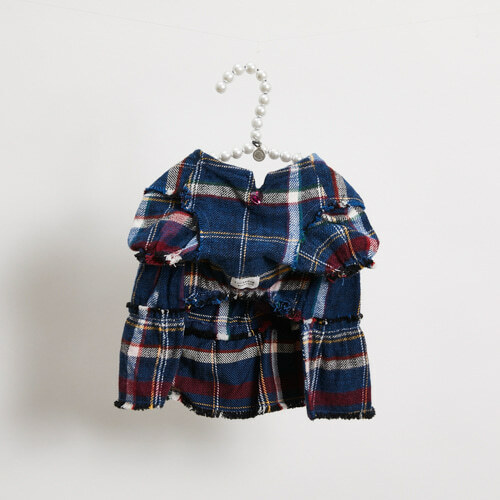 氣質學院派的經典格紋,與高雅的深藍色色調,隨性的抽紗設計綴以小蝴蝶結,胸前可愛的施華洛世奇水晶裝飾,