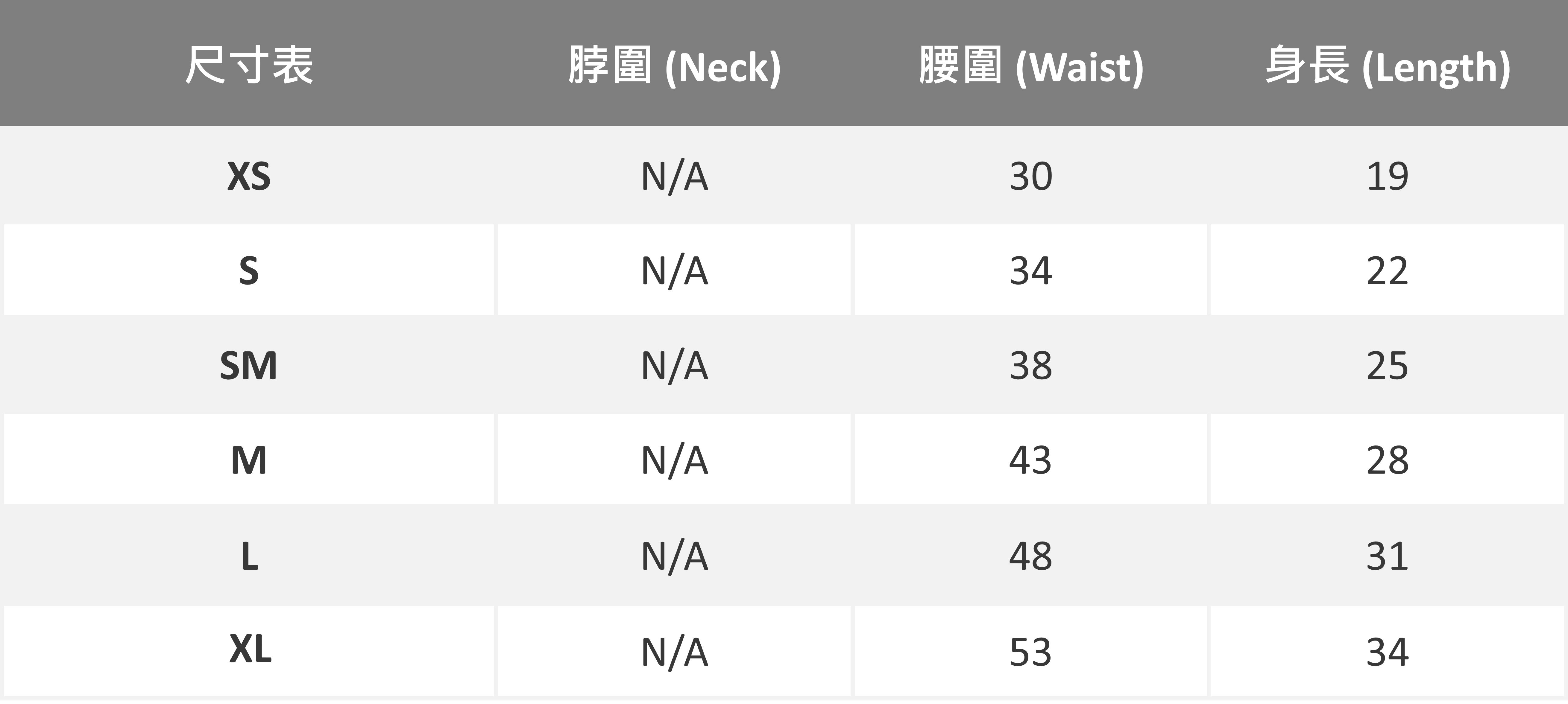 尺寸表