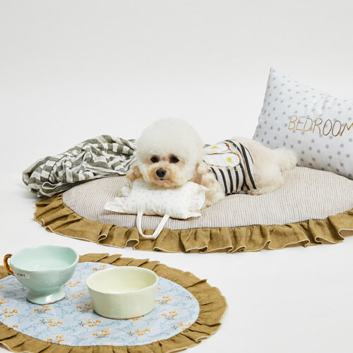 柔軟的亞麻荷葉邊環繞其上,背面則選用天然亞麻布料收尾,展現極致講究的雙面質感。