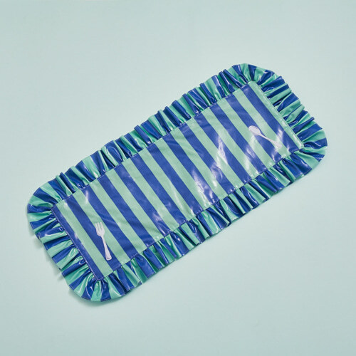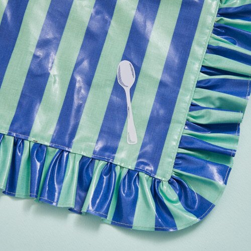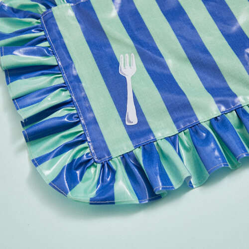 以來自丹麥的生物等級防水面料製成,Double Diner Mat 採用經典藍白條紋設計,搭配柔軟亞麻背面,展現簡約卻不失質感的美學。俏皮的刀叉印花為餐桌增添愉悅氛圍,寬敞的版型足以擺放兩個碗盤,無論是毛孩兄妹共餐,或是乾淨分隔飼料與飲水,皆恰到好處。細節處綴以 Louisdog 標誌性織標,實用與優雅兼備,是用餐時光不可或缺的精緻之選。