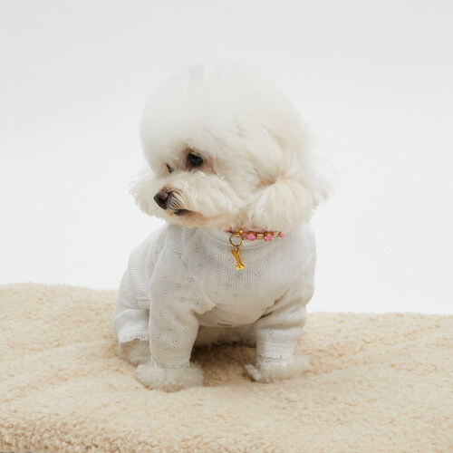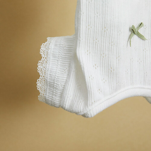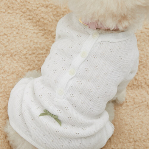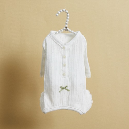 可愛的鏤空面料結合細緻蕾絲細節,讓這款連身服成為室內理想的內搭單品。