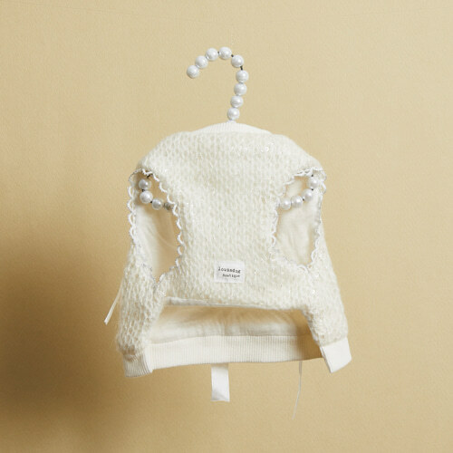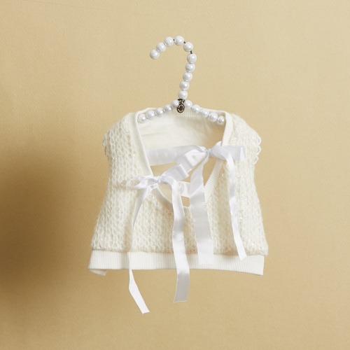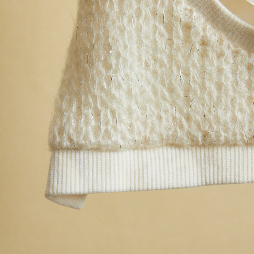 這款義大利馬海毛混紡針織背心質地輕盈細緻,帶有迷人的金屬光澤。