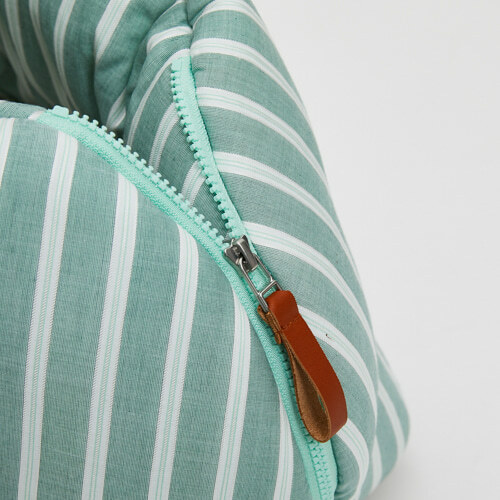 使用來自義大利 Como 地區的絲棉混紡布料製成,展現輕盈光澤與柔軟手感。以靜謐自然為靈感的 Kale Stripe 條紋設計,彷彿將山林微風與陽光一同帶在身上。