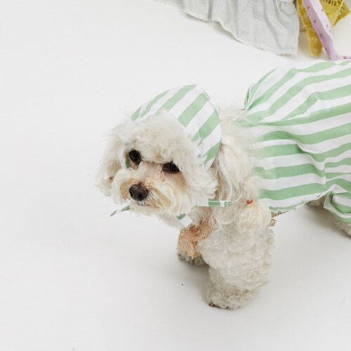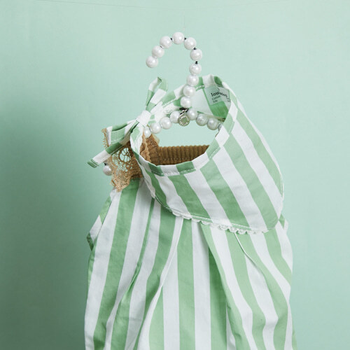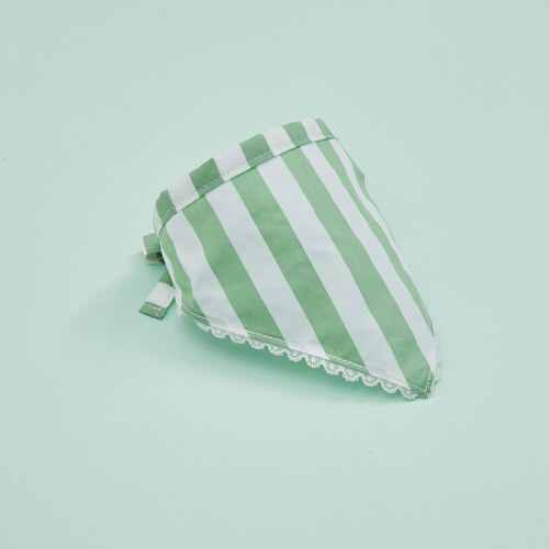 領口以自然打結方式固定,形成柔美圓潤的輪廓;邊緣搭配鏤空花邊蕾絲收邊,為整體造型增添復古與浪漫氣息,從各個角度都能展現出優雅細節。