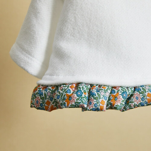 精緻的荷葉邊設計,為慶祝英國 Liberty 150 週年而設計的碎花樣式,增添活潑可愛的細節。