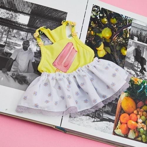 如炎夏午後的一支清涼冰棒,充滿陽光氣息的亮黃色主體,搭配 Louisdog 經典冰棒插畫,瞬間點亮毛孩的造型焦點。