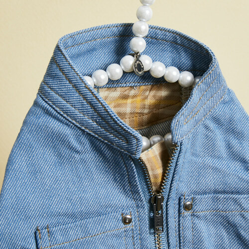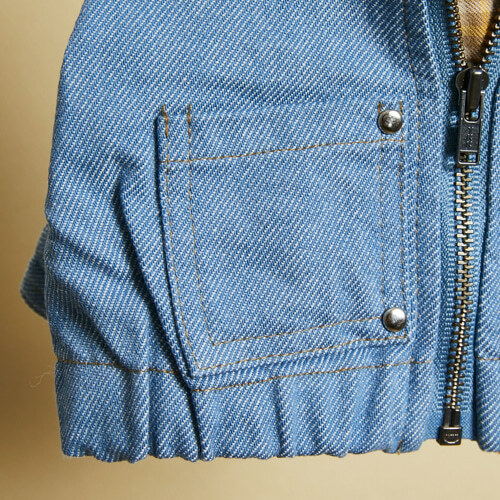 秋季時尚的義大利有機牛仔面料,立領及鑲釘口袋設計,帥氣十足~