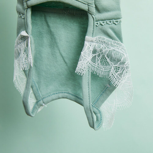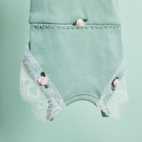 內衣即時尚的時代,這款兒童褲裝帶來獨特的內衣風格設計,靈感來自媽媽的優雅連身衣,融合細膩蕾絲與玫瑰花飾,呈現柔美高級質感。選用薄荷綠增添活潑氛圍,讓穿搭更具層次感與時尚感。