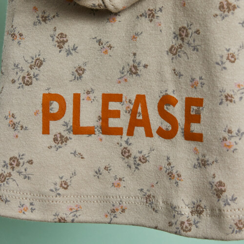 這款 Please Hoodie 以溫暖柔和的摩卡慕斯色為基調,搭配細膩的小蒼蘭花卉印花,營造出清新且富有層次感的穿搭風格。連帽設計不僅增添休閒感,也兼具實用性,適合與輕薄 T 恤或洋裝疊搭,打造舒適與時尚兼具的造型。