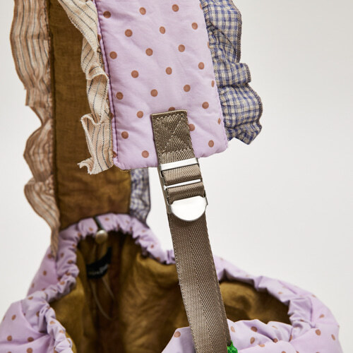 這款包包以 柔和紫色調 搭配 經典波點,營造出溫柔又帶點復古的旅行氛圍。