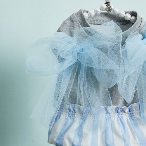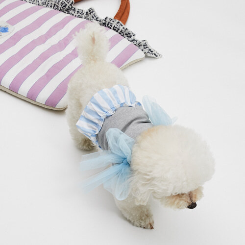 主體採用柔軟彈性的棉質布料,搭配義大利 Como 地區製的絲棉混紡條紋荷葉邊,