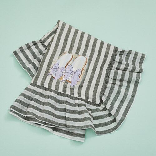以義大利條紋亞麻棉布與有機棉毛圈布雙面結合,