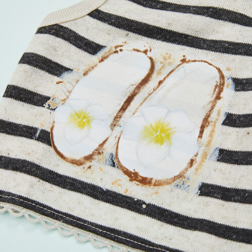 融合 復古感拖鞋印花與柔和條紋,打造出舒適卻獨具個性的造型;