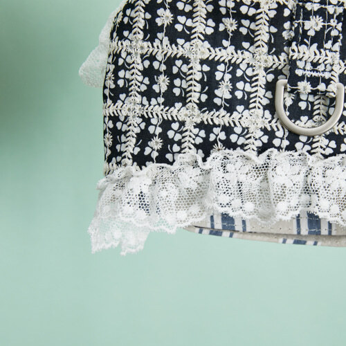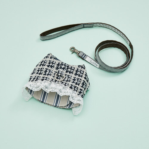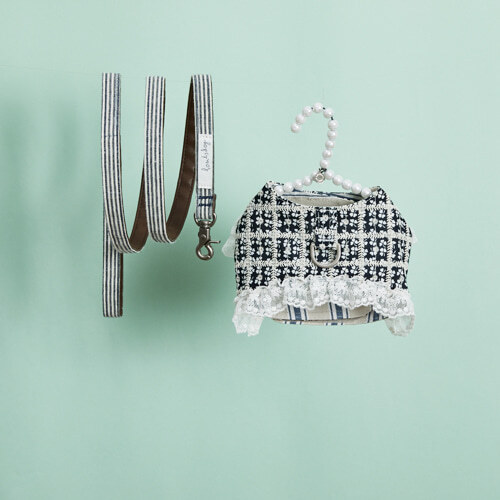 搭配細緻的蕾絲滾邊與條紋牽繩,將步行時光也變得詩意優雅。