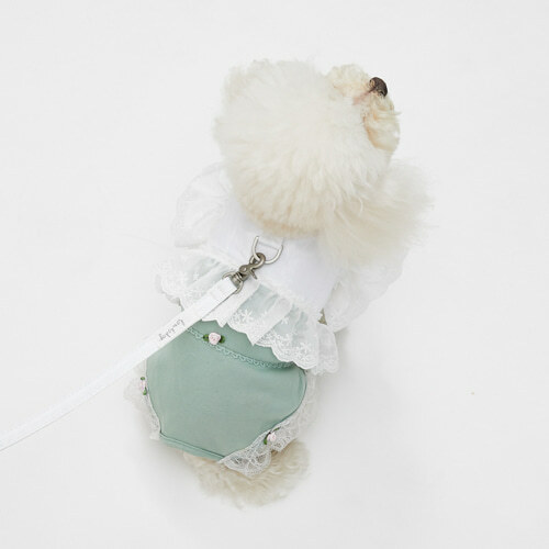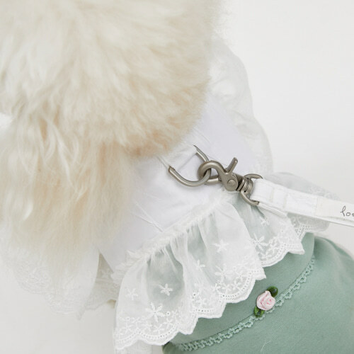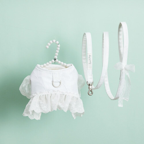 胸背與牽繩皆飾以同款蕾絲緞帶,完美展現一致性與整體感,