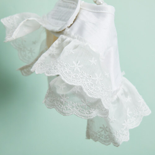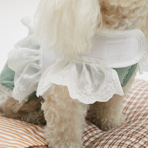 3. 同布蕾絲緞帶裝飾胸背與牽繩,打造整體風格感