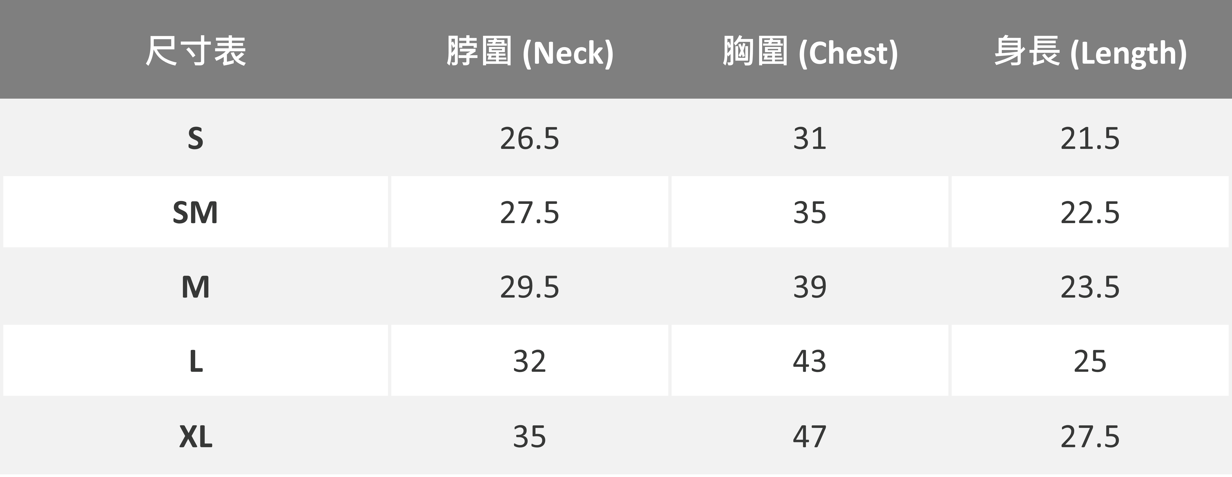 2. 尺寸選擇請以胸圍為主,衣長穿著起來的長度會因版型與狗狗身材而有不同。