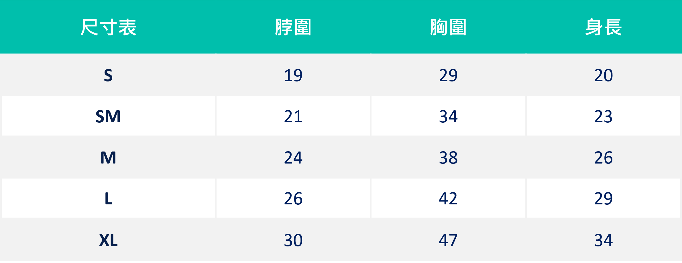 * 尺寸選擇請以胸圍為主,衣長穿著起來的長度會因版型與狗狗身材而有不同。